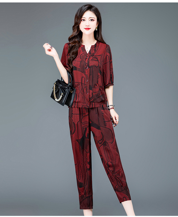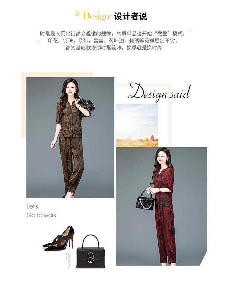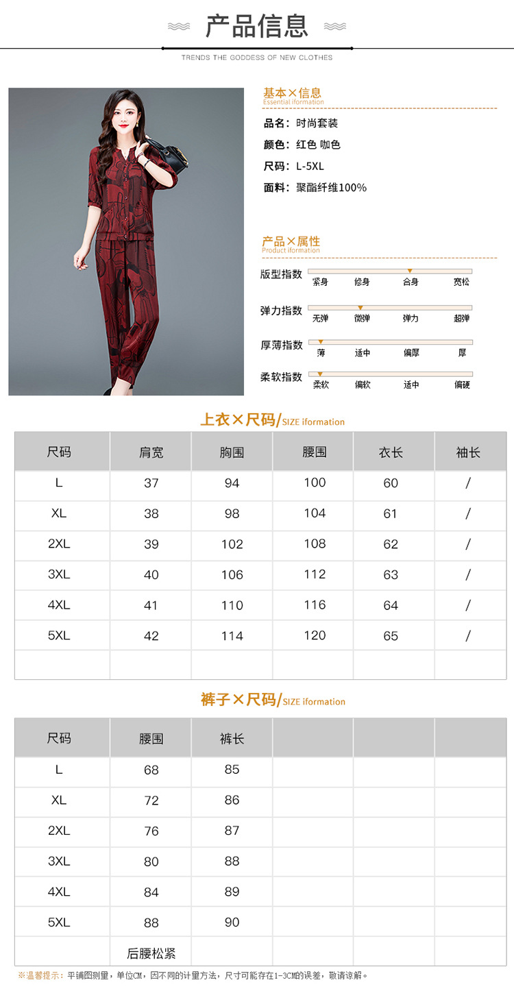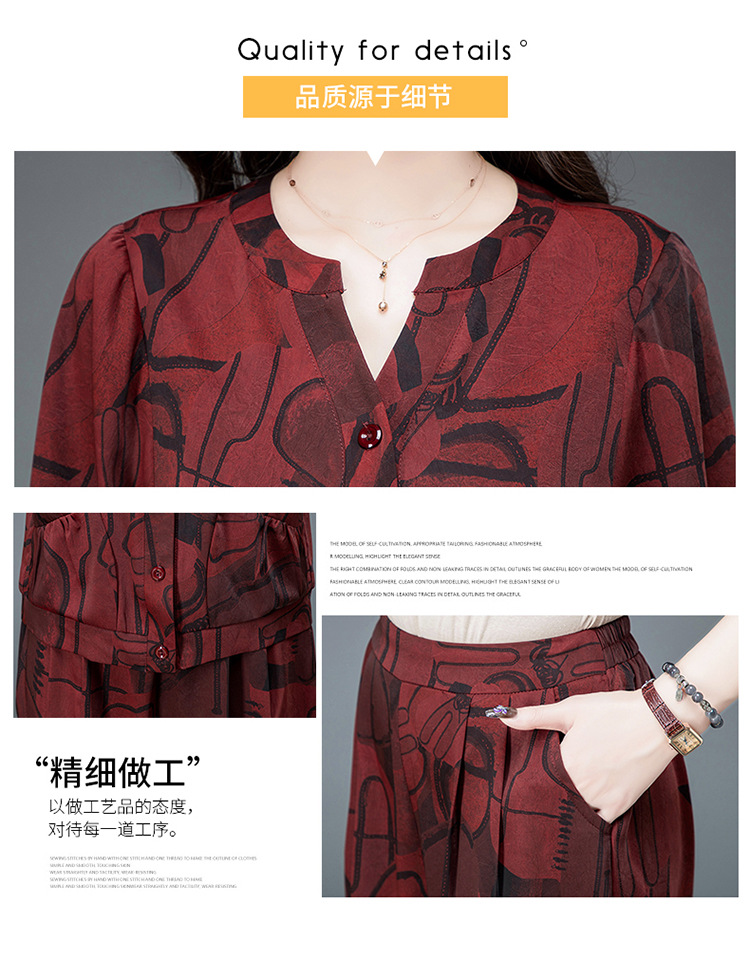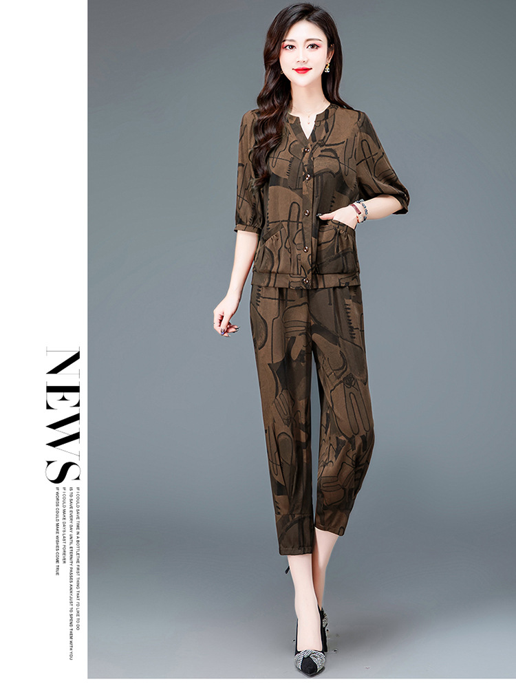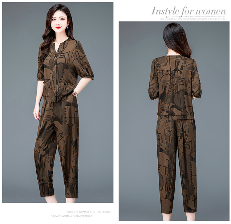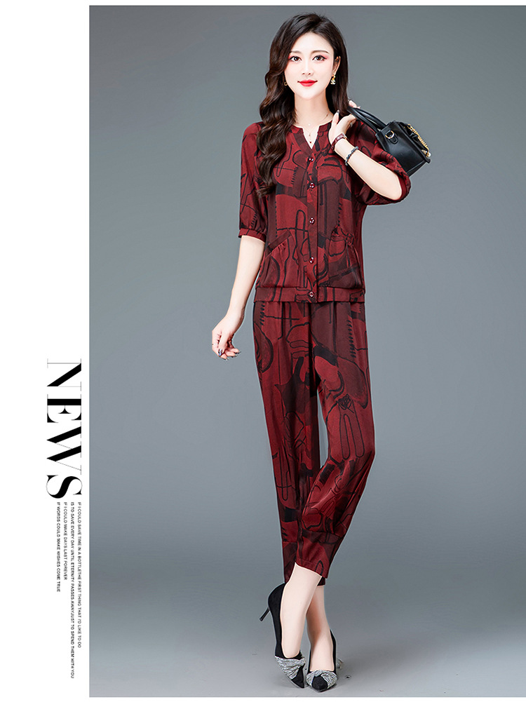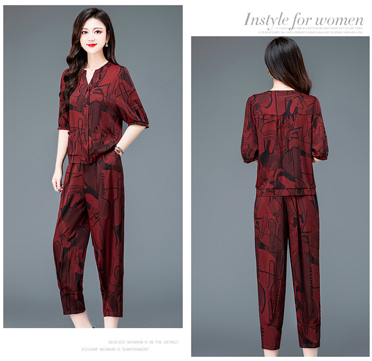 时尚妈妈装套装,印花两件套打底衫高腰哈伦裤小脚裤QYM-TYH-23B856 -Y