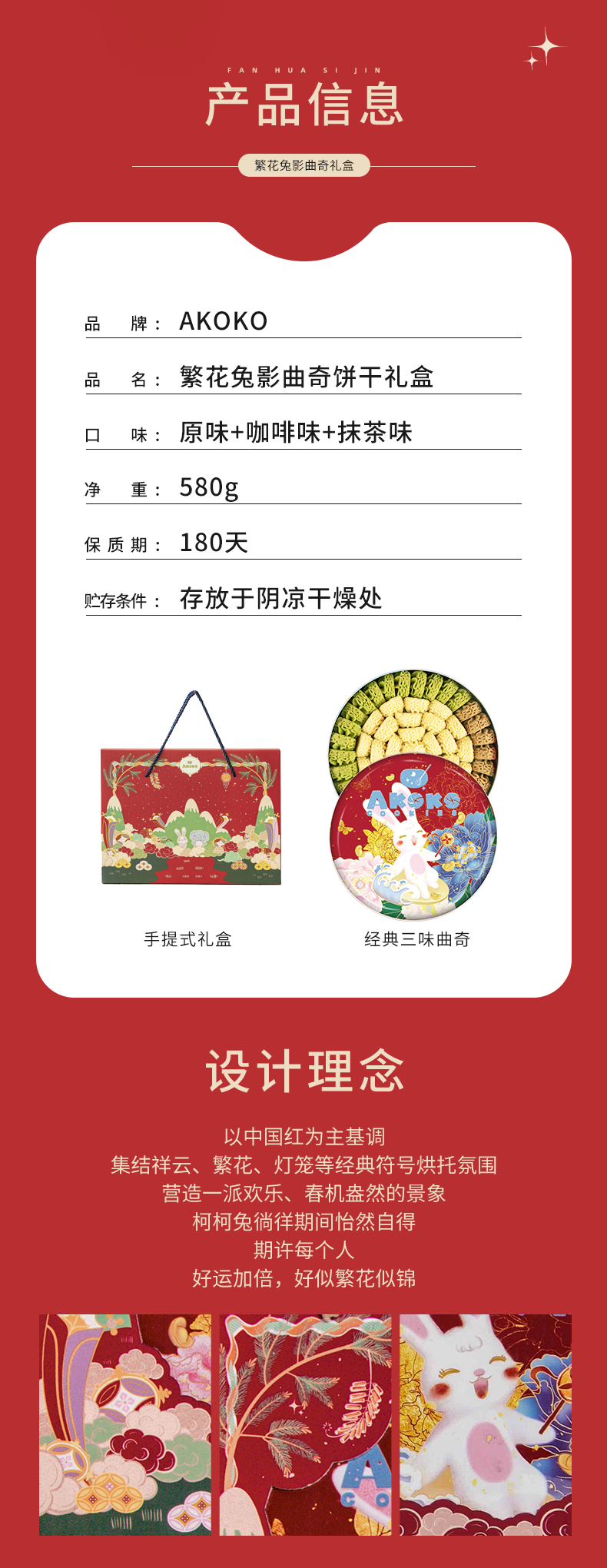 AKOKO新年礼盒 繁花兔影礼盒装/经典小花曲奇160g*3盒送礼袋 酥松绵密,吃过一口就再也忘不掉的味道