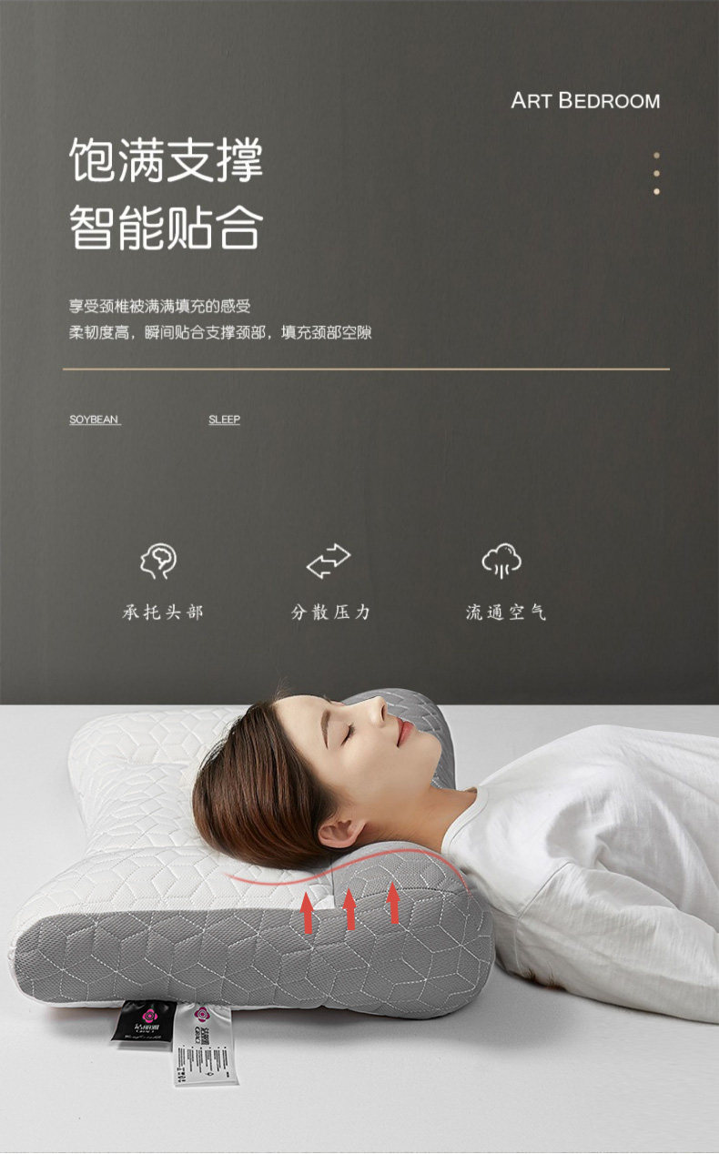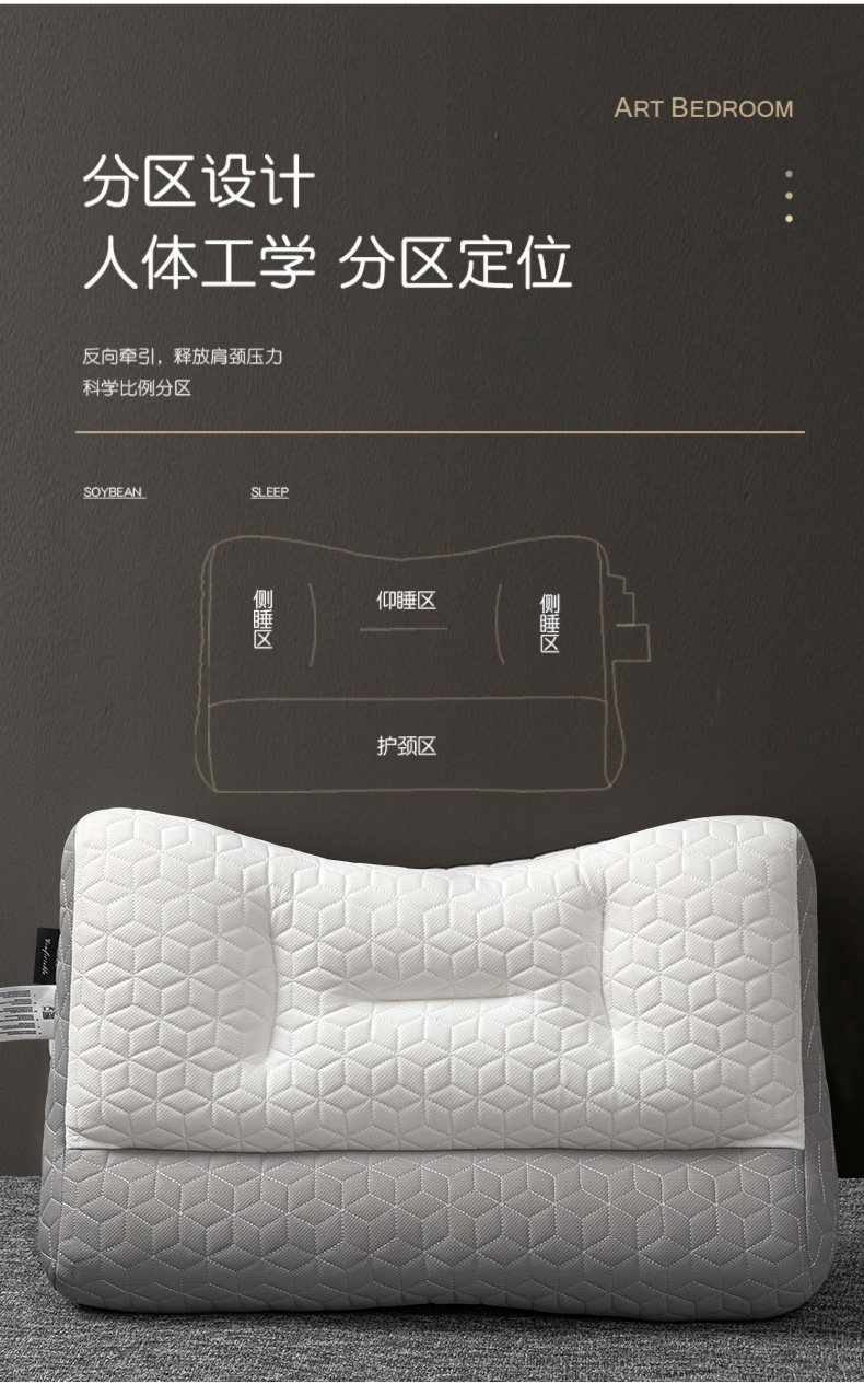 【乳胶牵引护颈枕❗高支高密】家用反牵引乳胶枕头成人护颈椎睡眠不塌高枕填充枕芯。rh