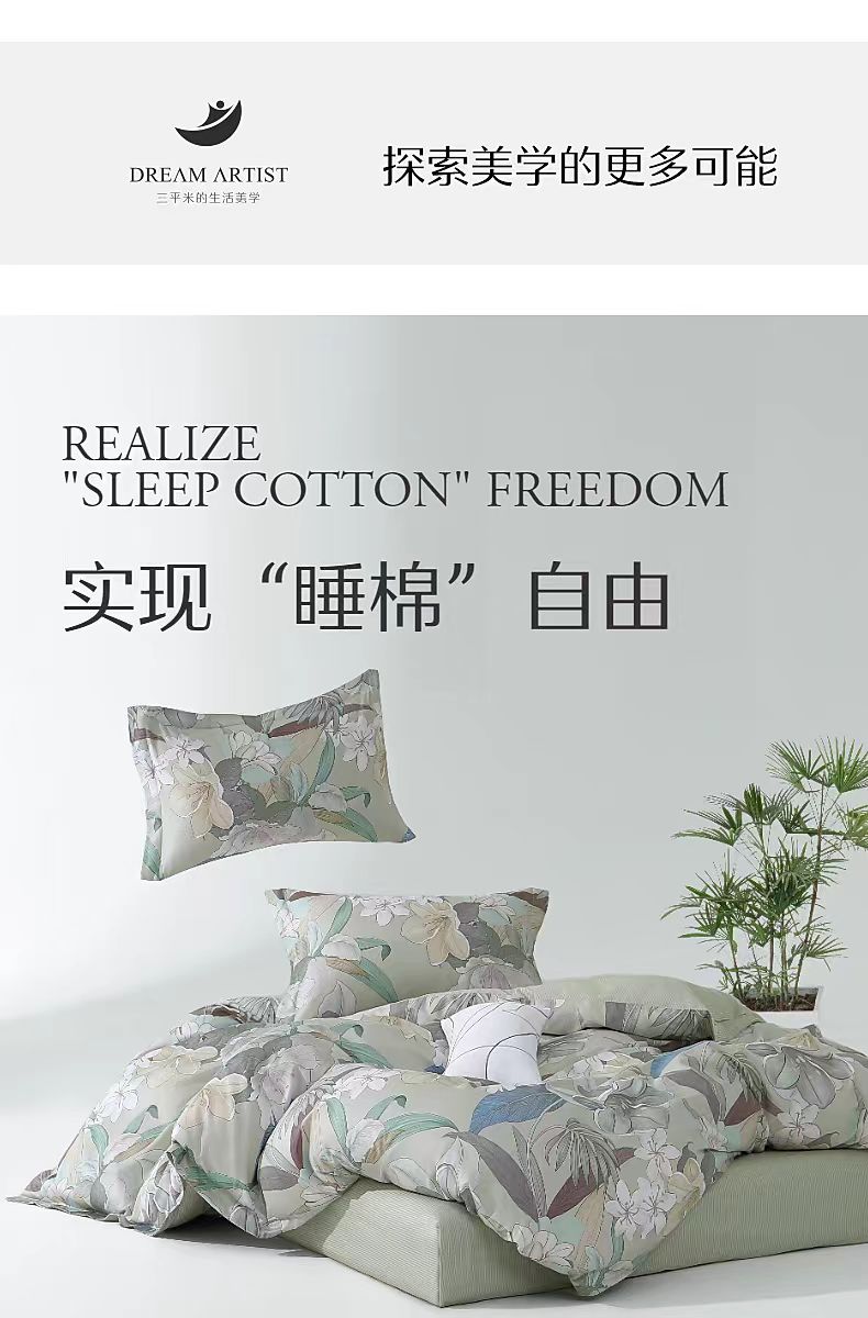 水星家纺全棉四件套纯棉套件卧室床单被套床上用品