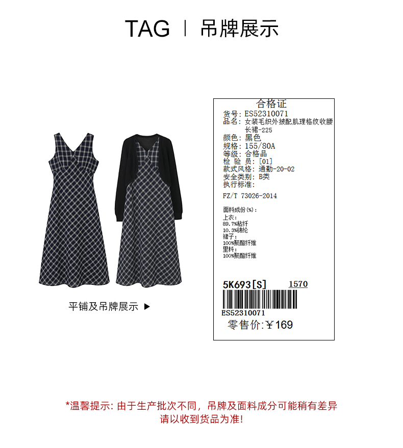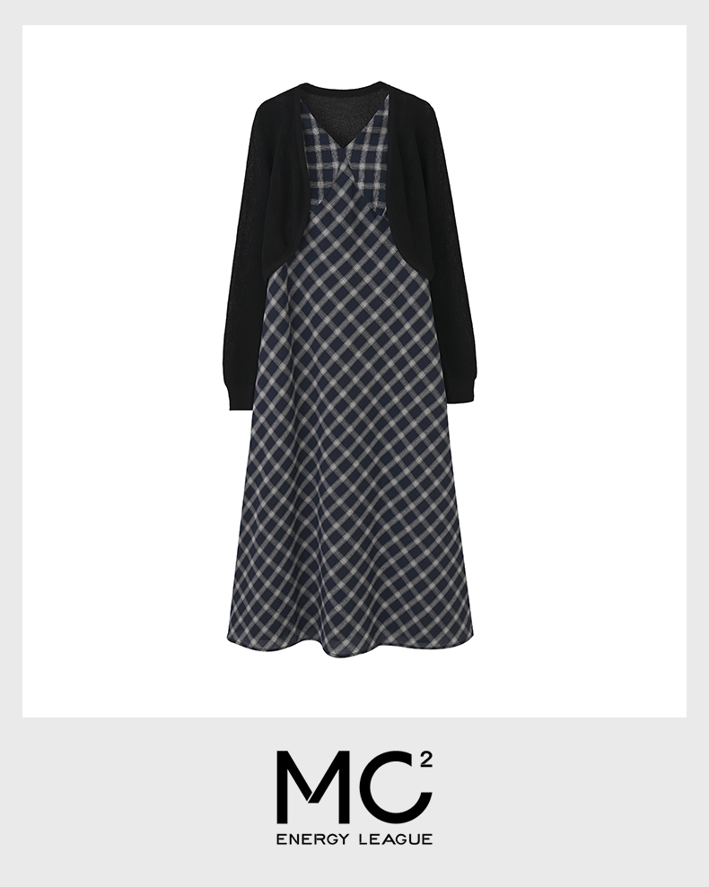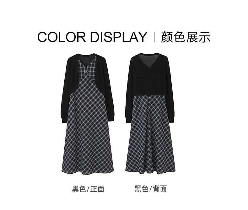 女装毛织外披配肌理格纹收腰长裙-225S5231007