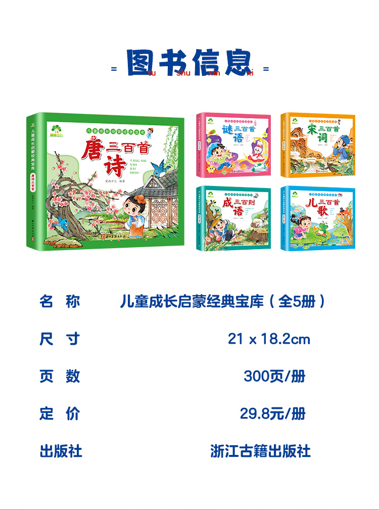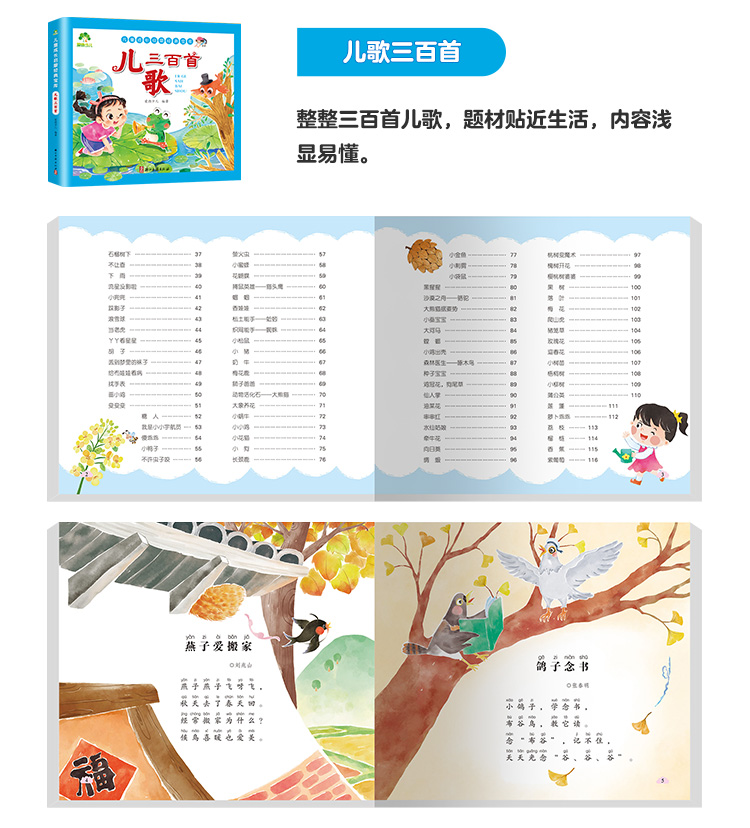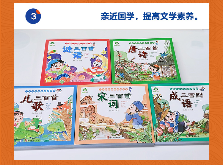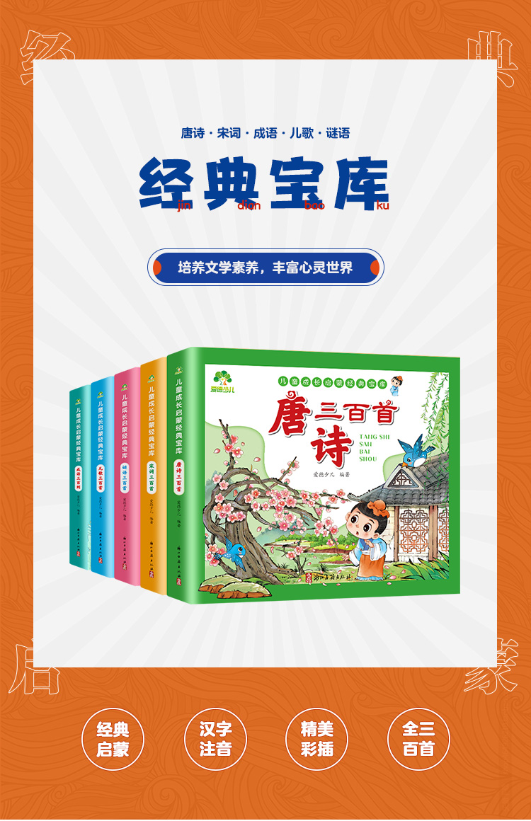 爱德少儿唐诗三百首幼儿早教正版全集彩图注音版宋词三百首小学生童谣儿歌300首早教书中国成语故事大全猜谜语儿童书精选三百则