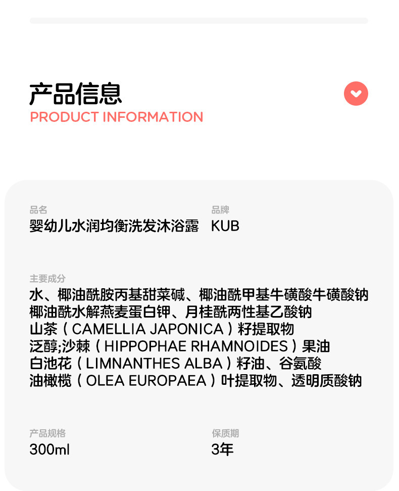 【59选3】可优比婴幼儿洗沐二合一300ml宝宝专用洗发沐浴露温和保湿(订单退款后不满足活动门槛的不予发货)