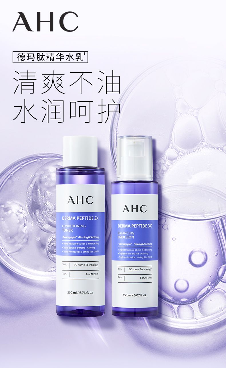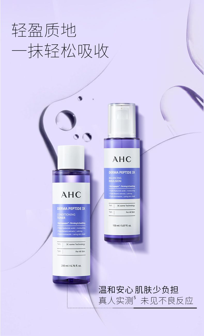 【预售 急单慎拍】AHC爱和纯德玛肽三重护肤紫苏补水水乳套装