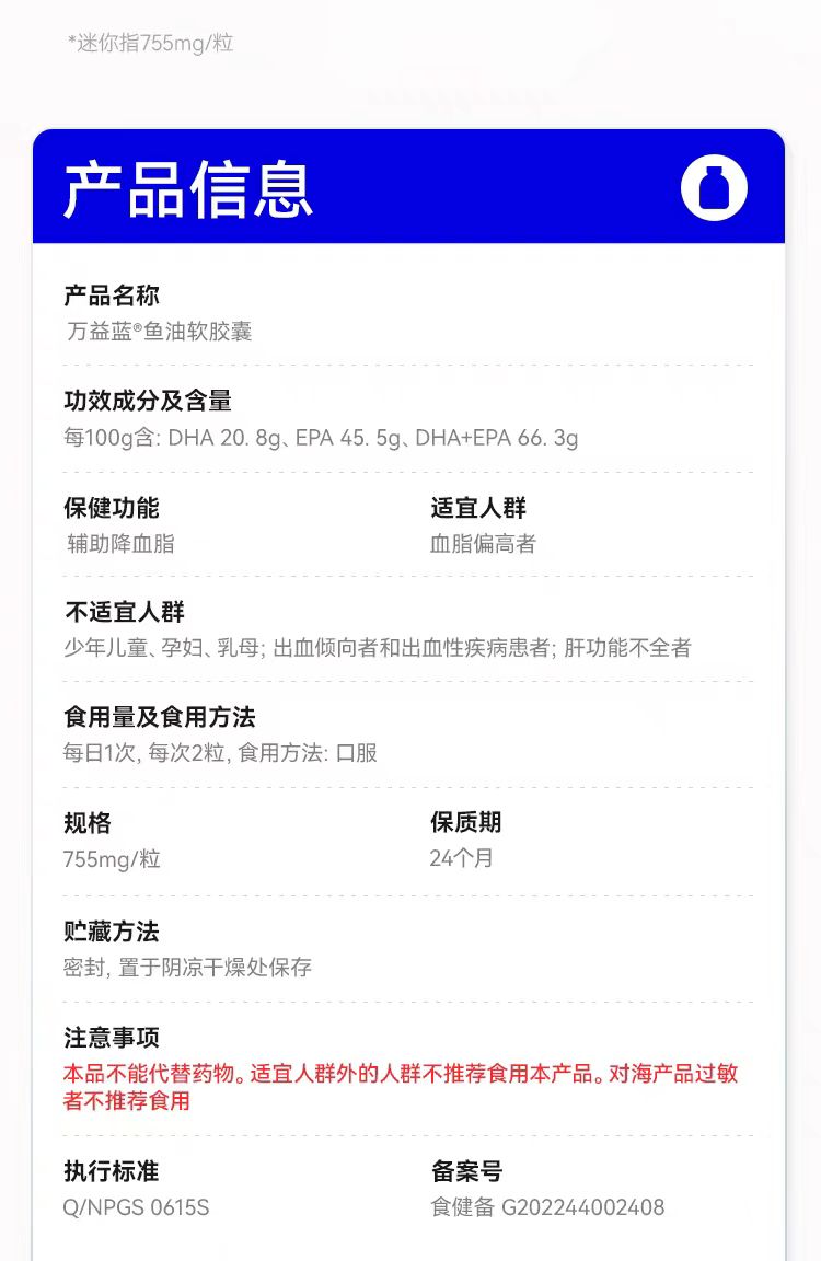 【产品名称】:万益蓝鱼油软胶囊