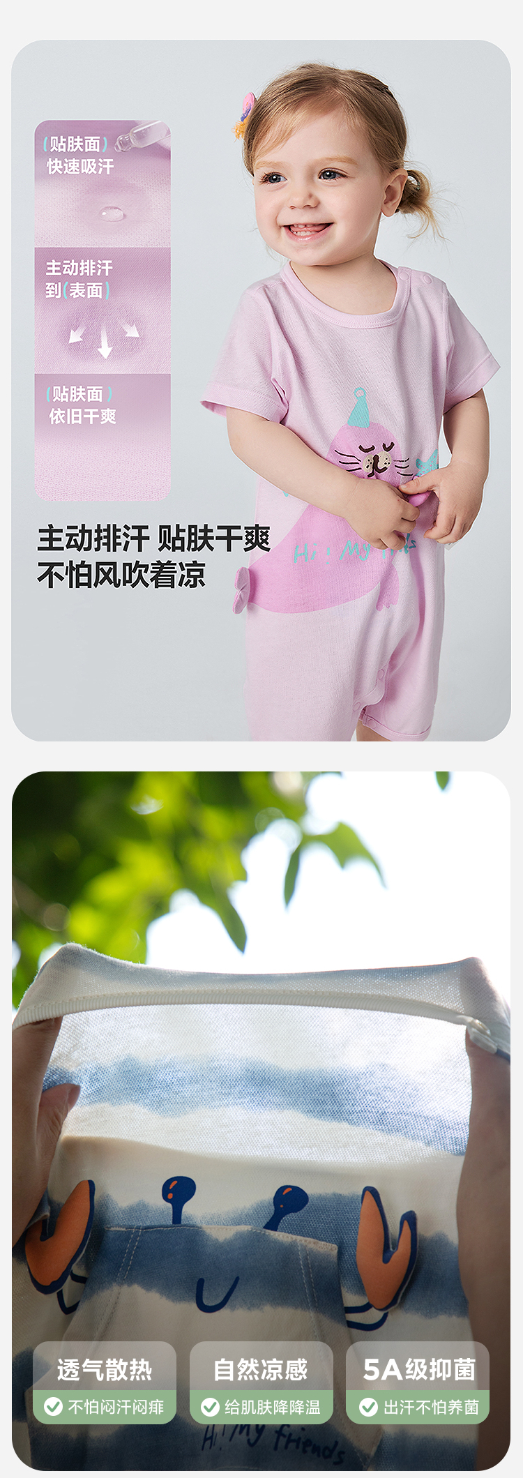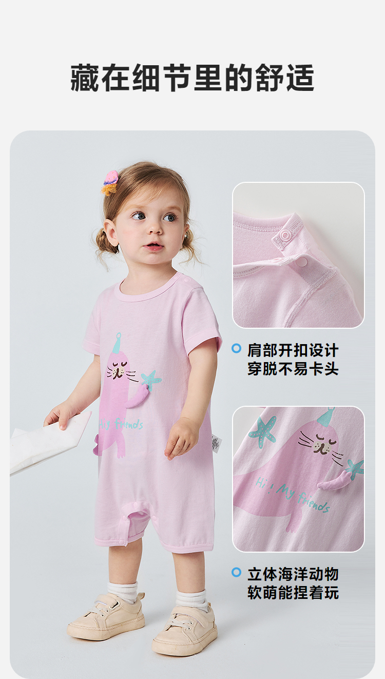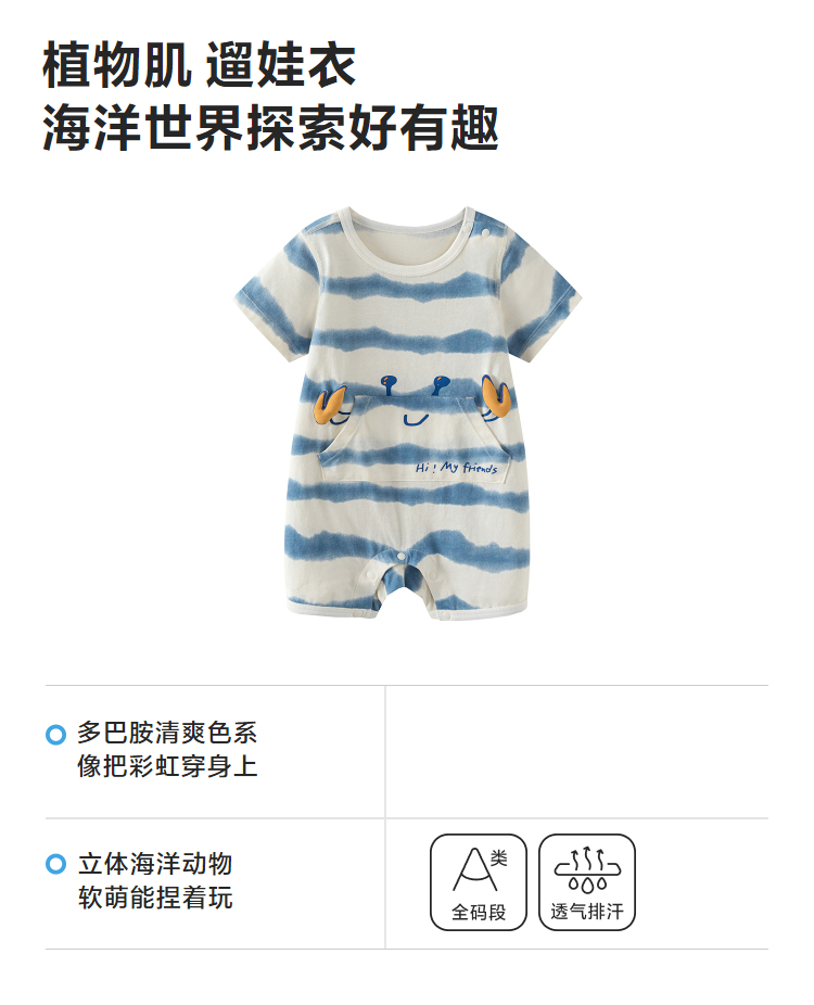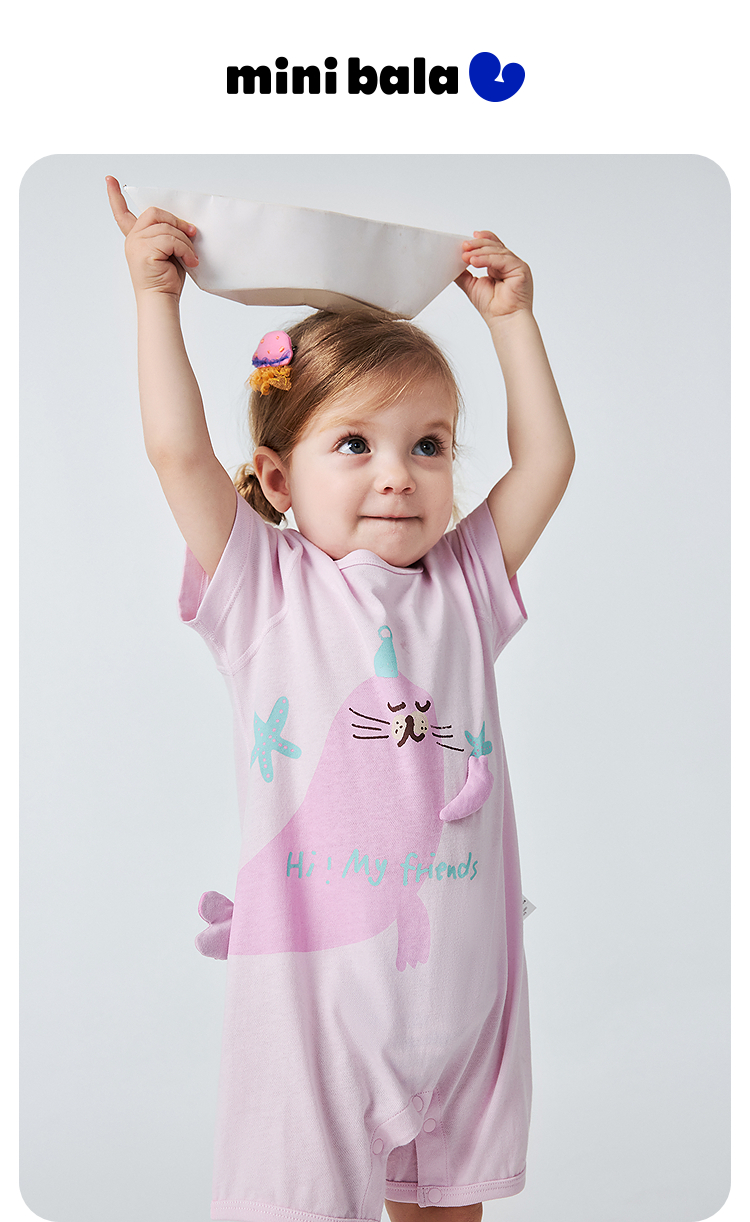 迷你巴拉巴拉婴儿外出连体衣宝宝多巴胺速干爬服亲肤排汗衣2026夏