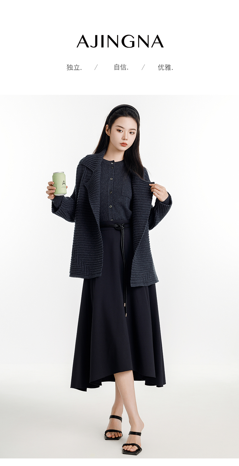 【商城同款】阿菁娜2024秋季新款宽松百搭格雷系针织外套A29Q318023