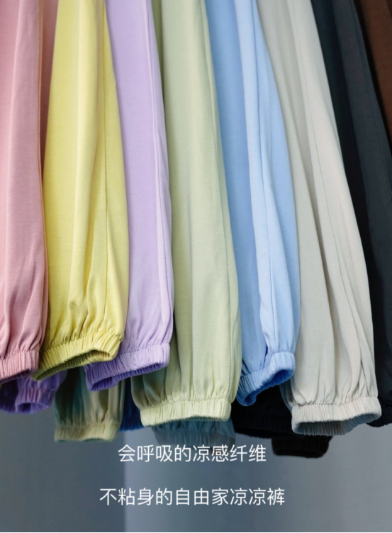 夏季科技面料——铜氨丝“会呼吸”的纤维 植物中提取出来的天然成分,绿色安全无污染 更显色、爽滑Q弹,甚至还能抗静电不贴皮肤不尴尬 吸湿排汗性能max,和闷热说bye! 活力多巴胺”8色“可选, 每个都是百搭色,活力又百搭 裤子版型宽松,夏季不闷热弹力腰带,不勒肚子 脚口束口,不惧跑跳爬, 轻松不紧身,居家出游全能裤!