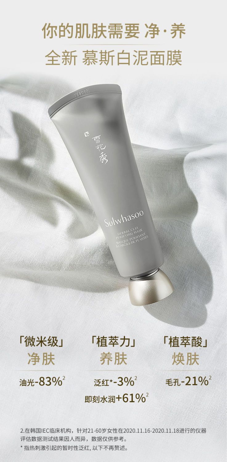 【爆款超低价预售 急单慎拍】雪花秀白泥面膜35ml小样清洁去黑头泥膜控油净颜美白