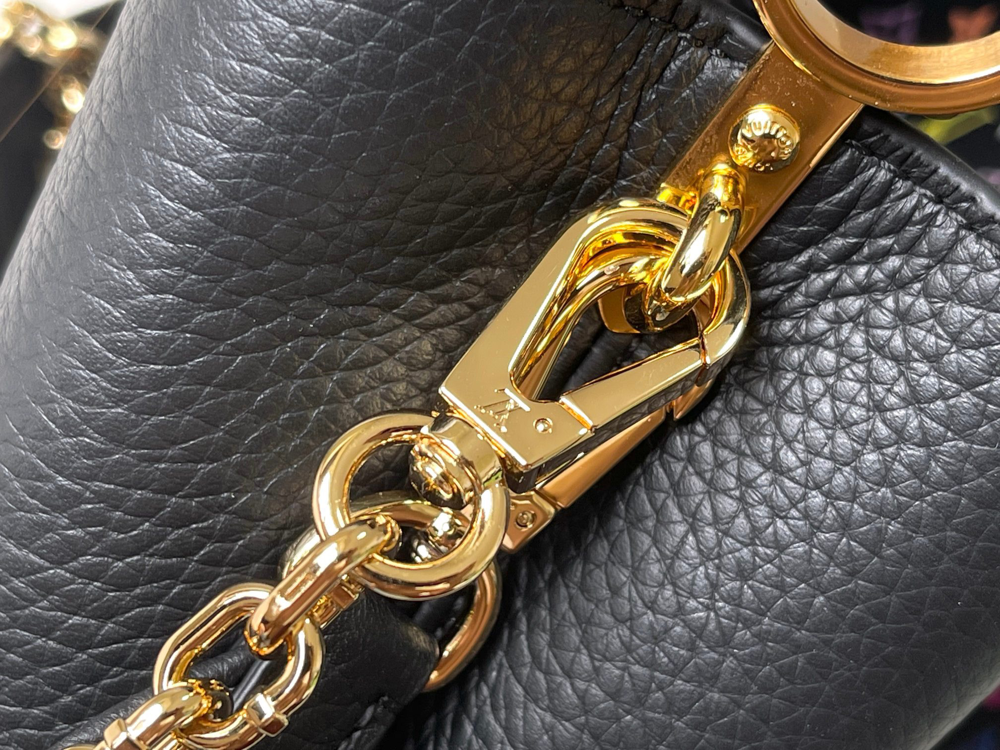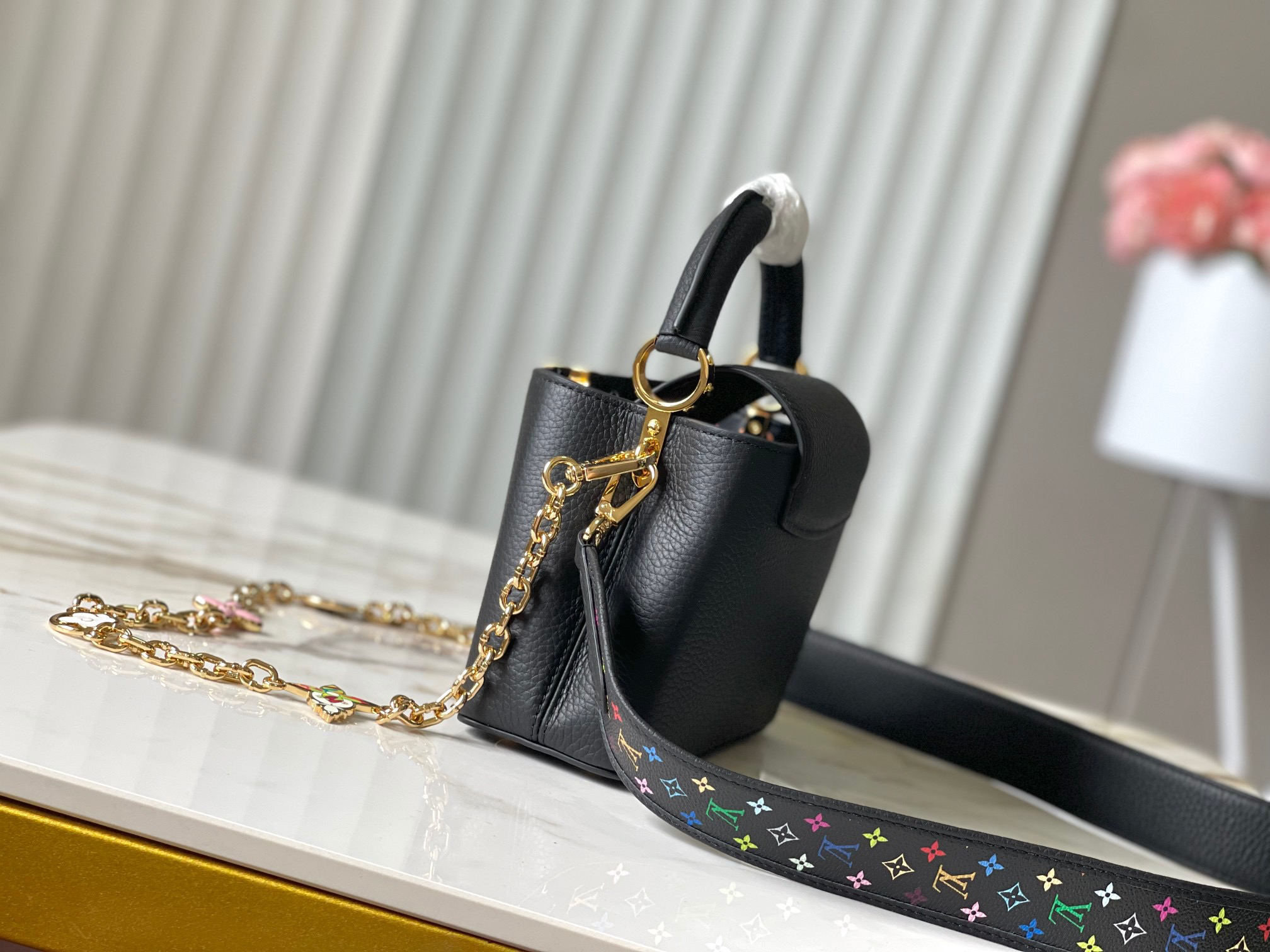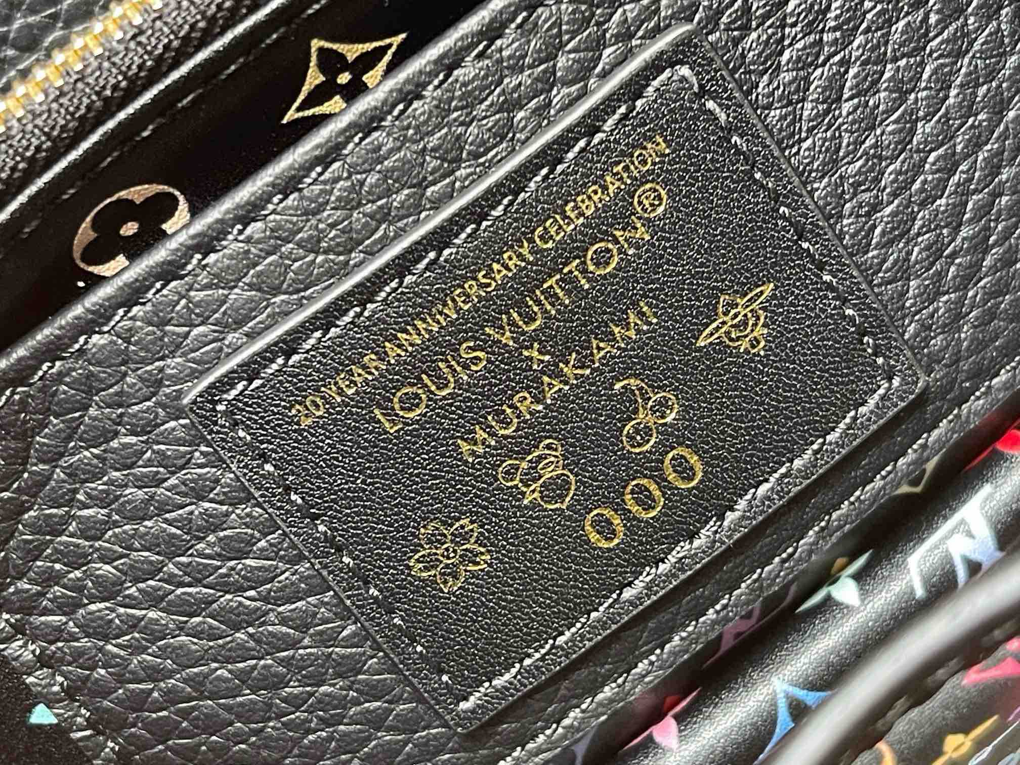 秋冬特惠💰1600 渠道级LV 新品 te级LV 动态芯片 M13878/M48865黑拼三彩 在展现轻快魅力X村上系列中 重新诠释了本季的签名 展示了豪斯的标志性卡普辛手提包 托里昂皮革材质 象征性的首字母 装饰Monogram花的可拆卸链条带 日本艺术家村上隆特有的超级扁平风格体现的愉快的熊猫角色等金色的硬件 在表带和内衬上增加充满生机的点的多色Monogram图案 Size : 21 * 13.6 * 8 CM