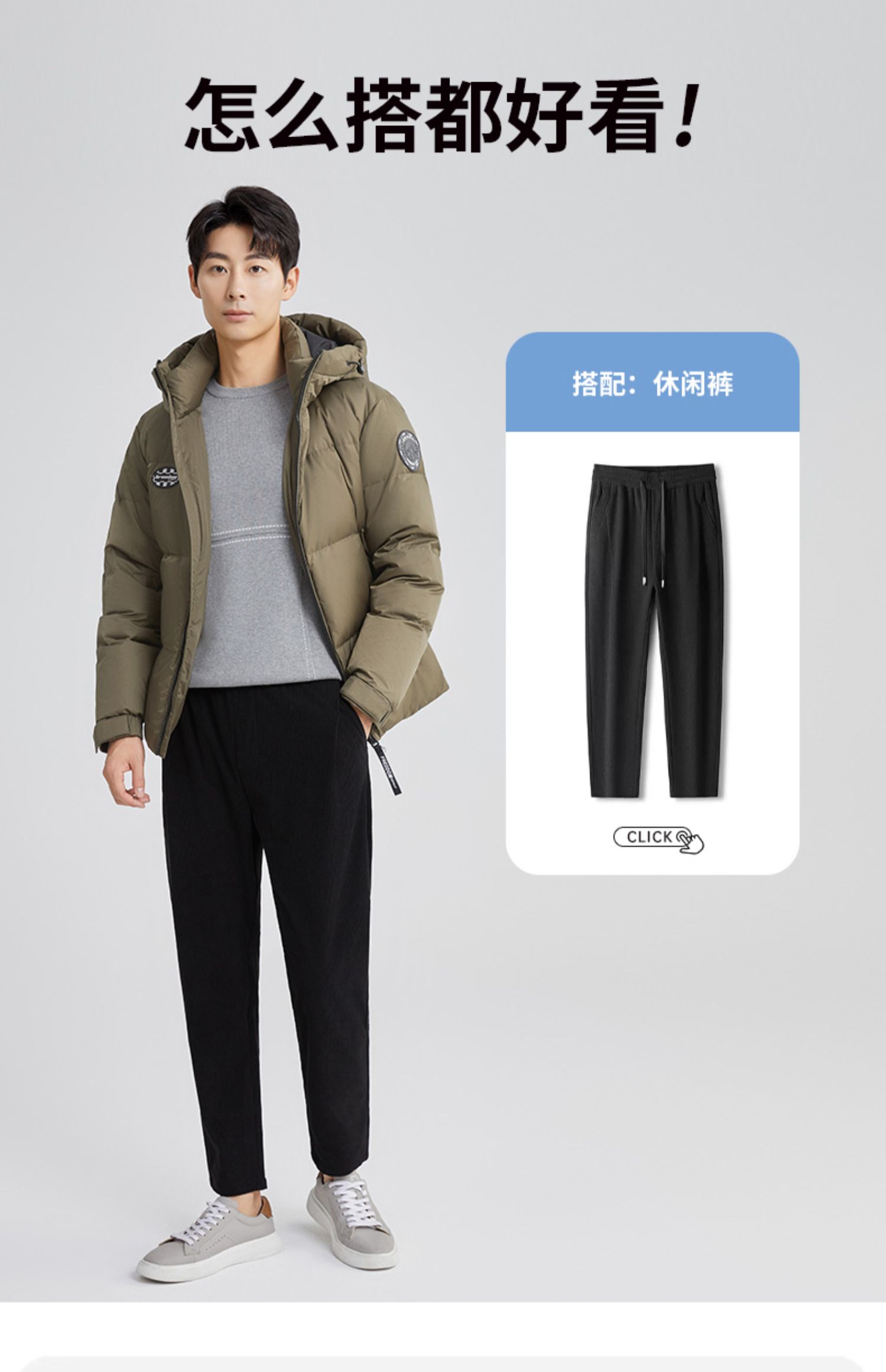 圣得西男装带袖标连帽加厚面包羽绒服2362942775