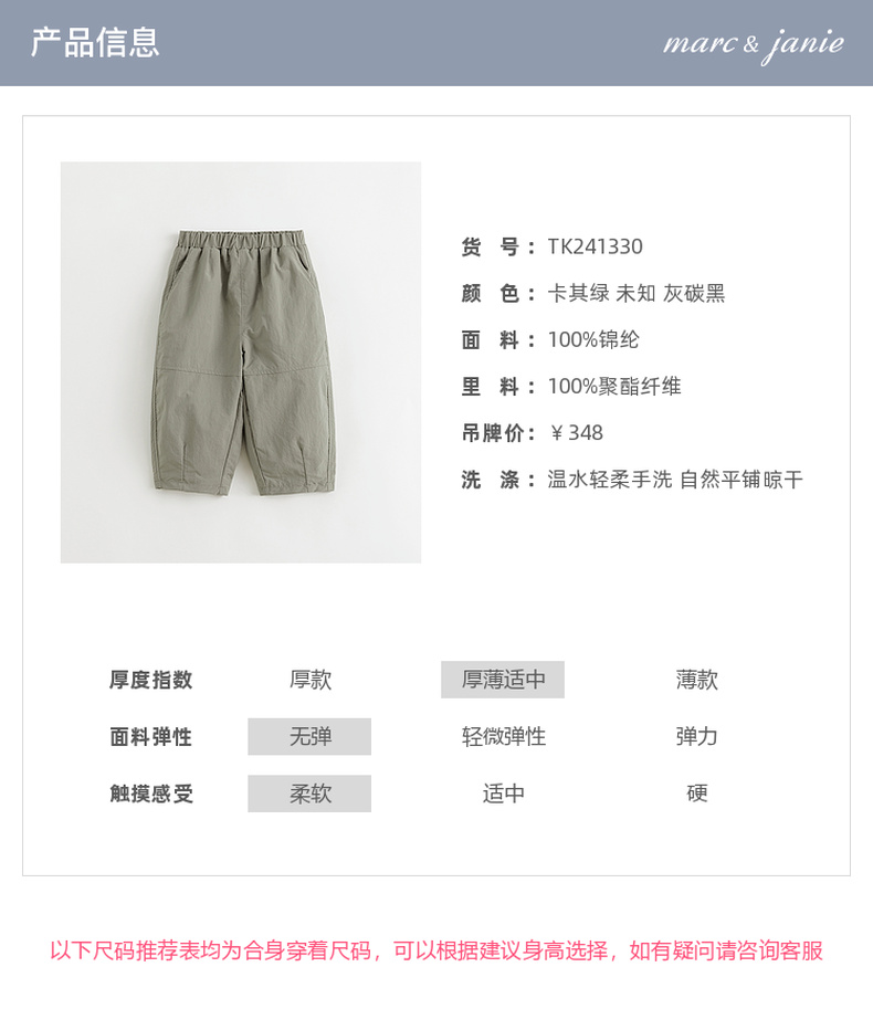 马克珍妮男童山系户外拼接工装裤2024年秋冬新款241330