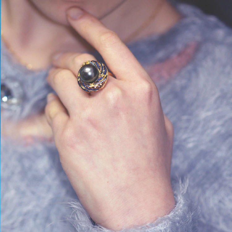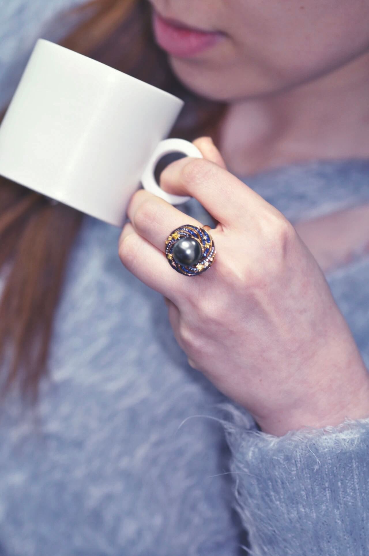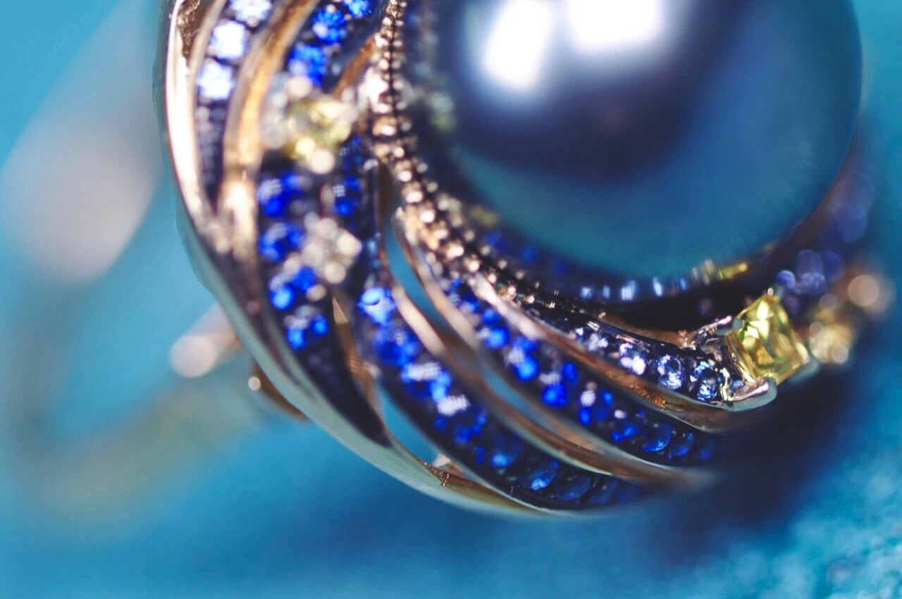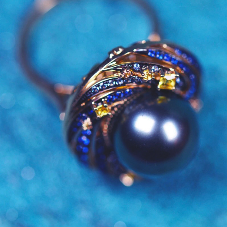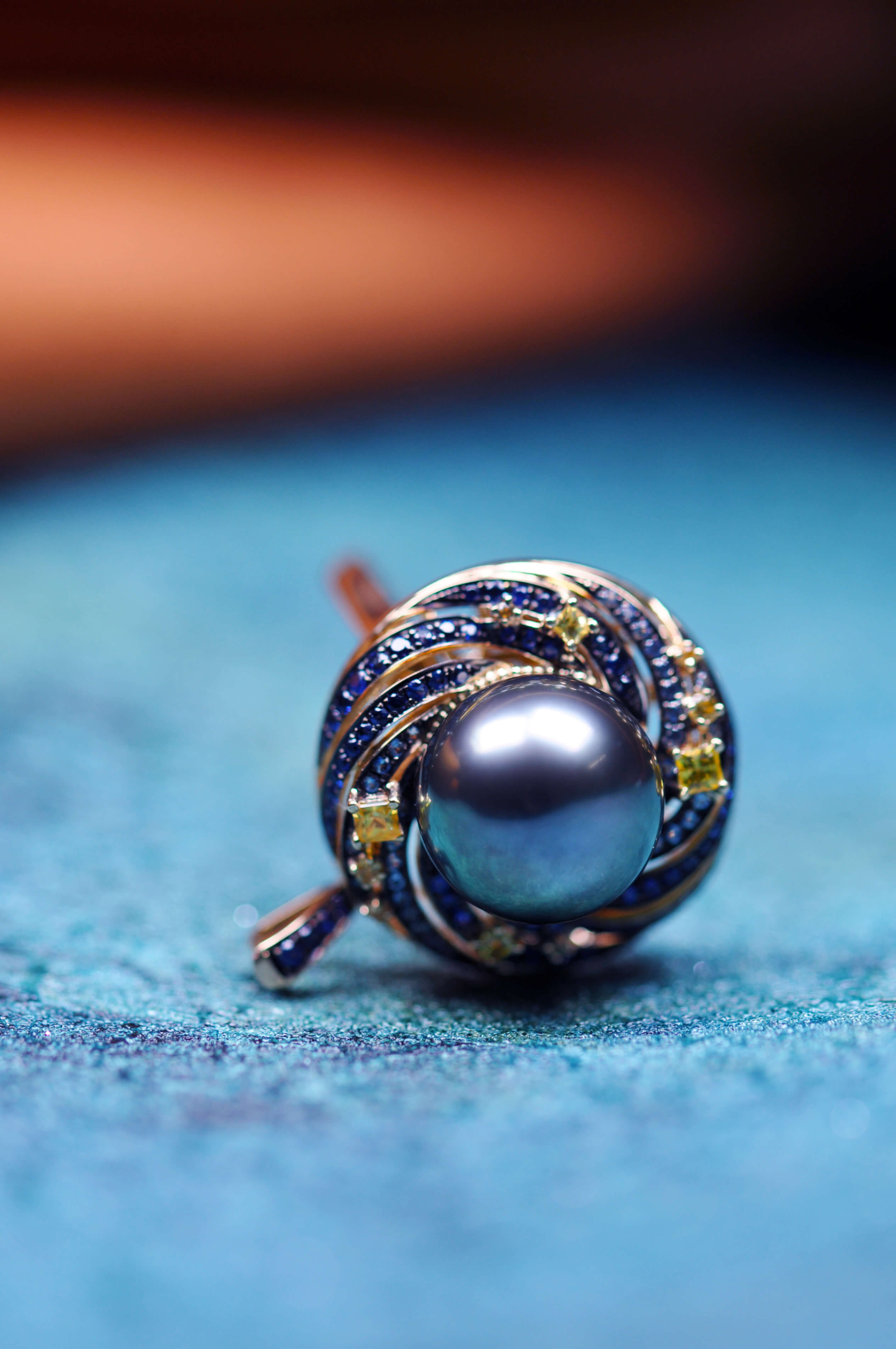 镶嵌深浅渐变的蓝宝石,代表星空,