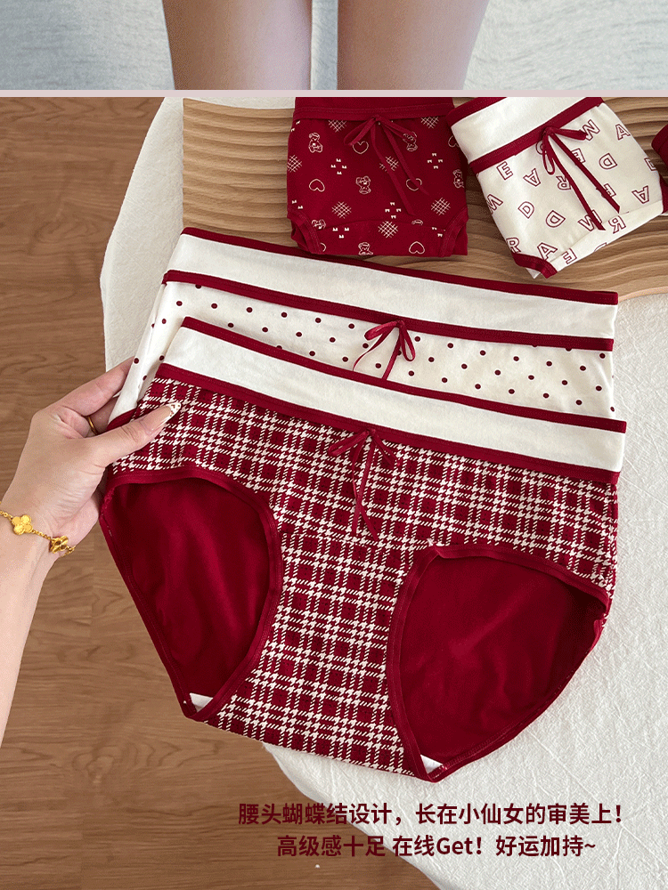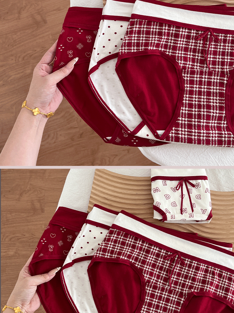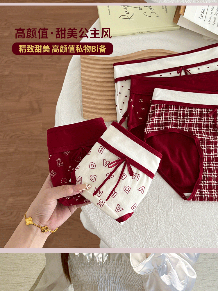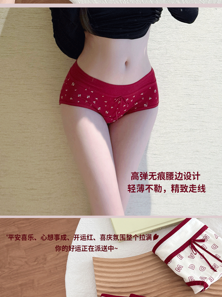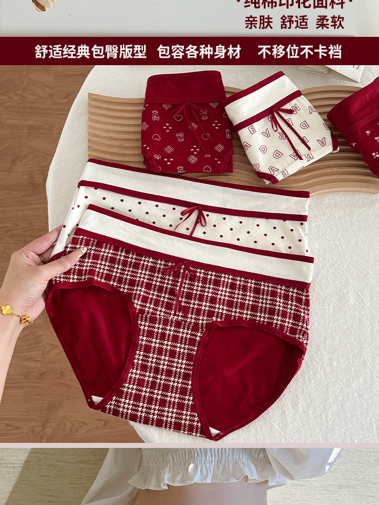 【新年当穿红】蝶安芬红色三角内裤3条装FC3928 新婚内裤 软糯柔软95%棉面料10A级抑jun舒爽透气 包臀版型 不移位不卡档