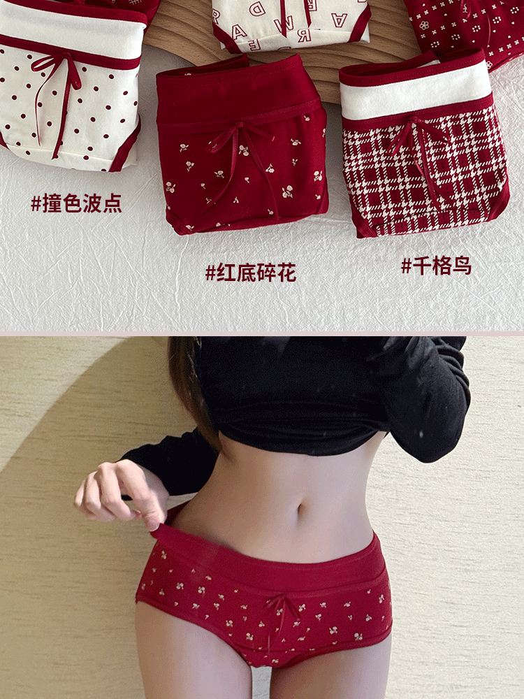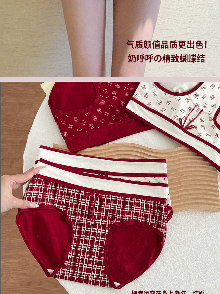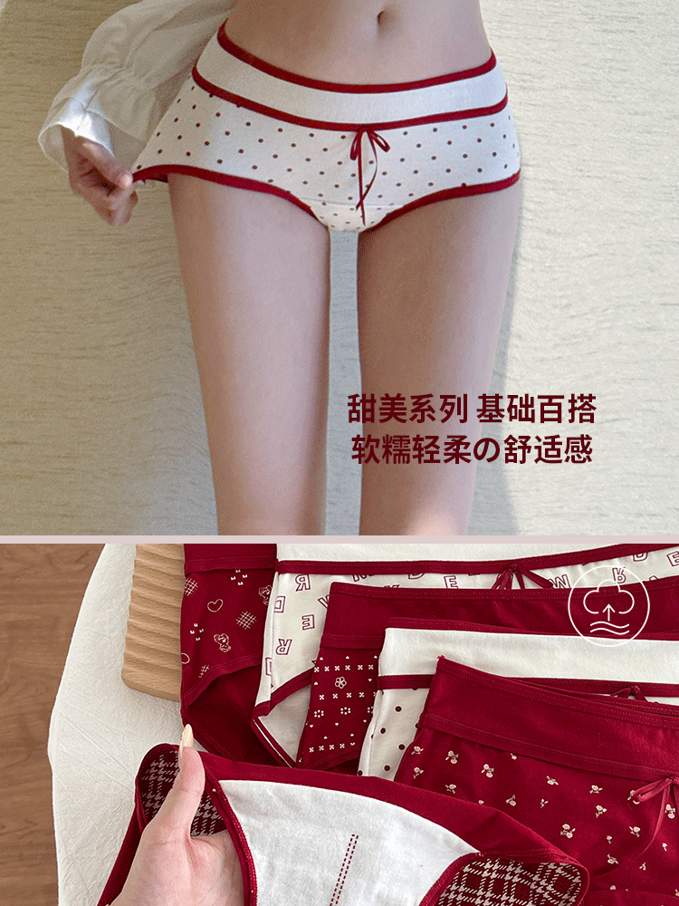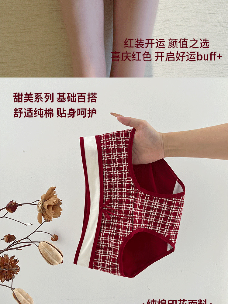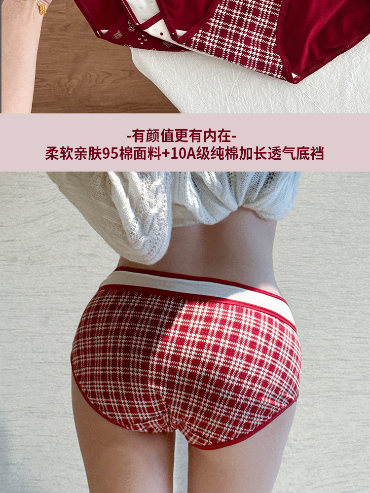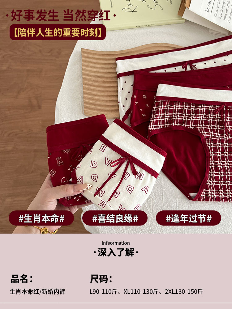 【新年当穿红】蝶安芬红色三角内裤3条装FC3928 新婚内裤 软糯柔软95%棉面料10A级抑jun舒爽透气 包臀版型 不移位不卡档