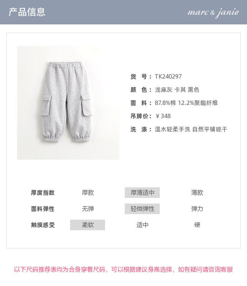 [城市户外]马克珍妮男童大口袋运动裤儿童工装裤束脚裤春款240297