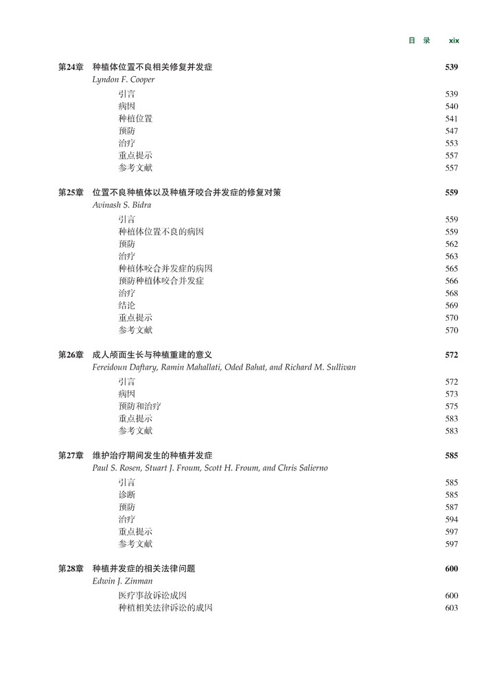 本书在内容编排上结构清晰,包括口腔种植的诊断、治疗计划,以及种植体放置、修复和维护治疗,口腔种植等各个时期的并发症等。此外,对骨增量和上颌窦提升相关的并发症也给予了详细地讨论,尤其是其病因和预防,为种植并发症治疗的“百科全书”。