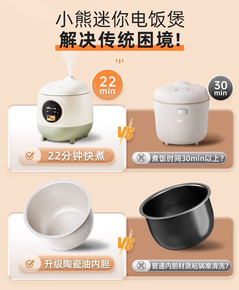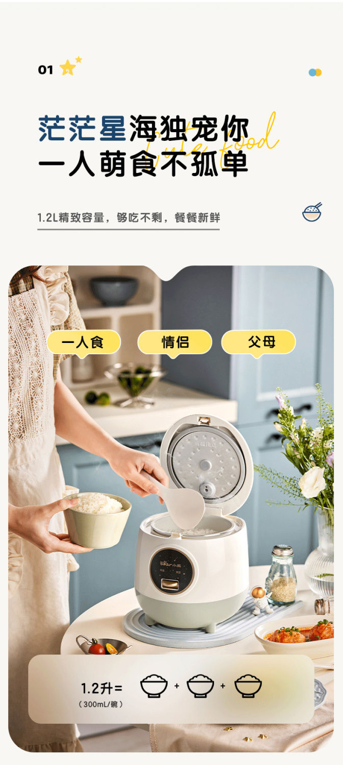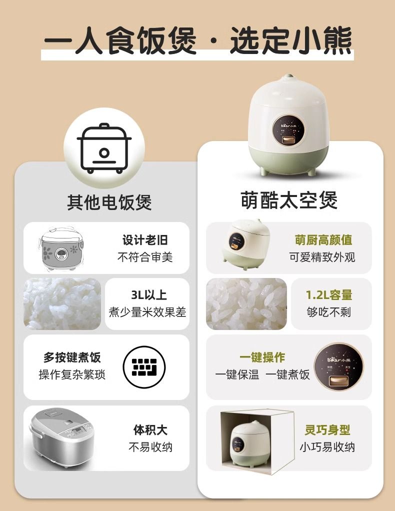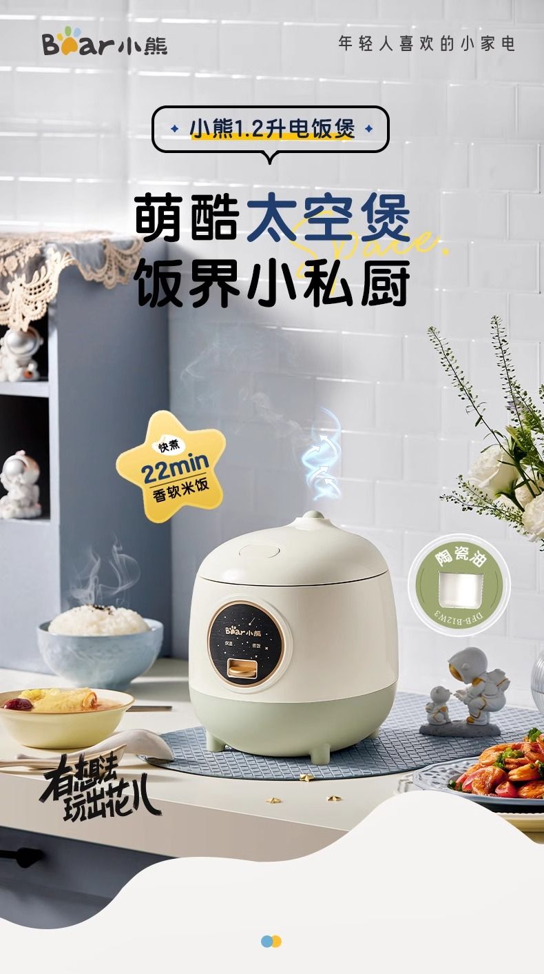 小熊 一人食 迷你电饭煲 1.2L
