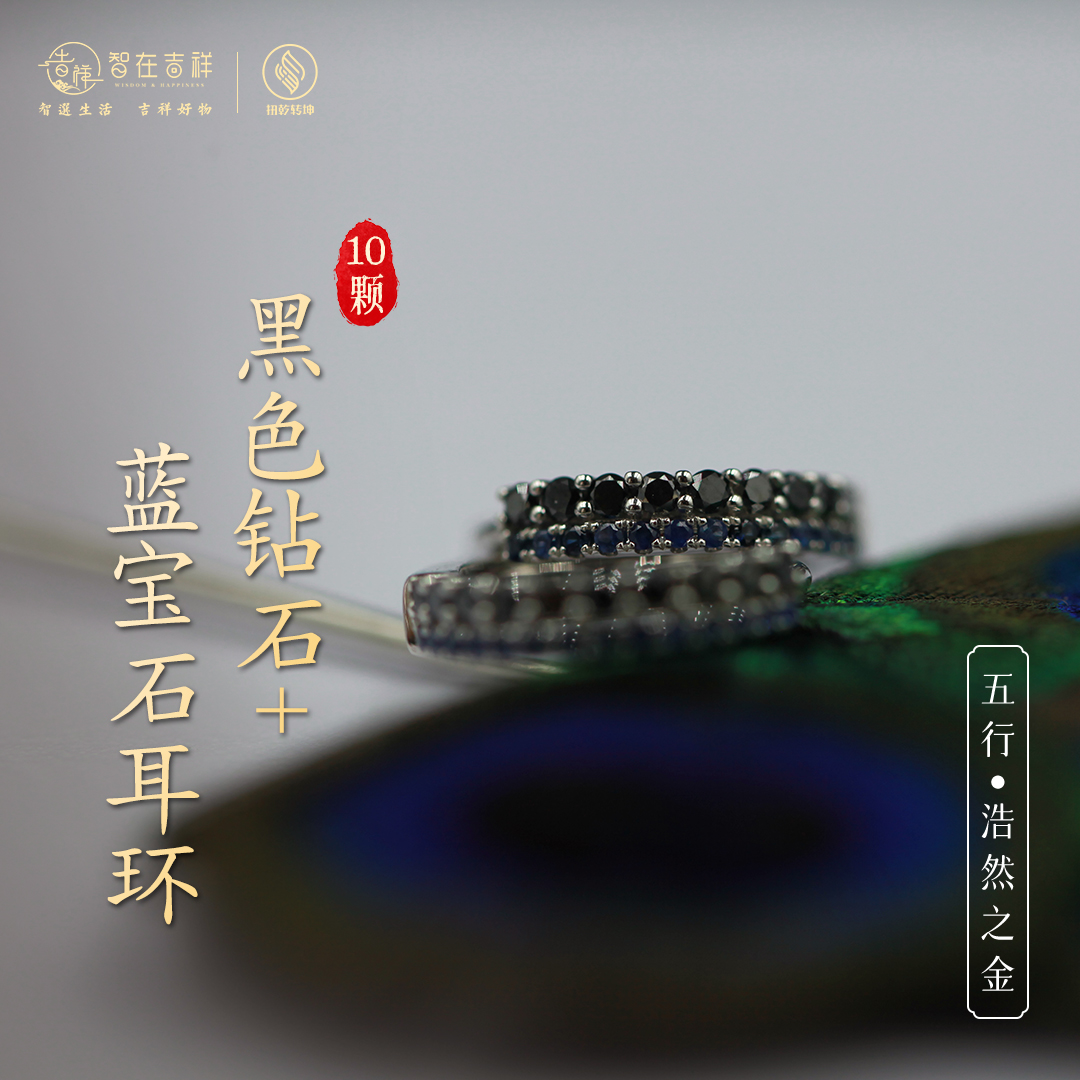 【浩然之金】十颗黑色钻石➕蓝宝石耳环