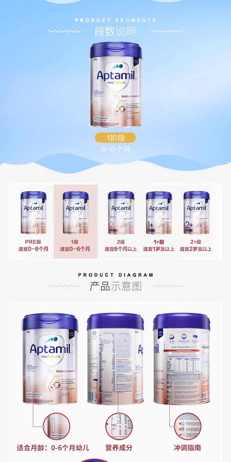 【中欧班列精选】HNMG 德国爱他美奶粉Aptamil 白金版1段(0-6个月)800g