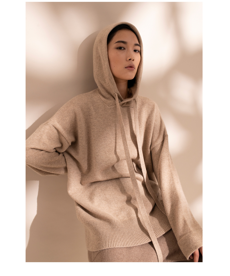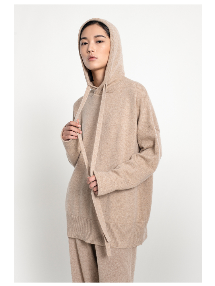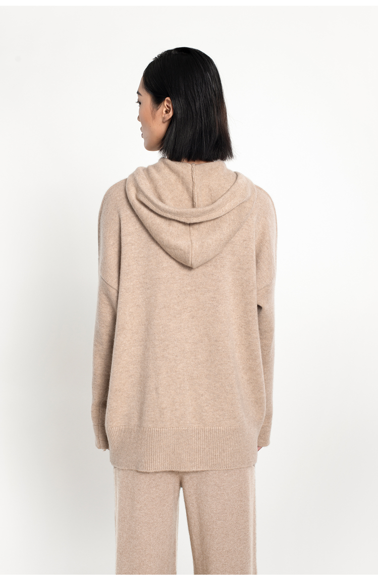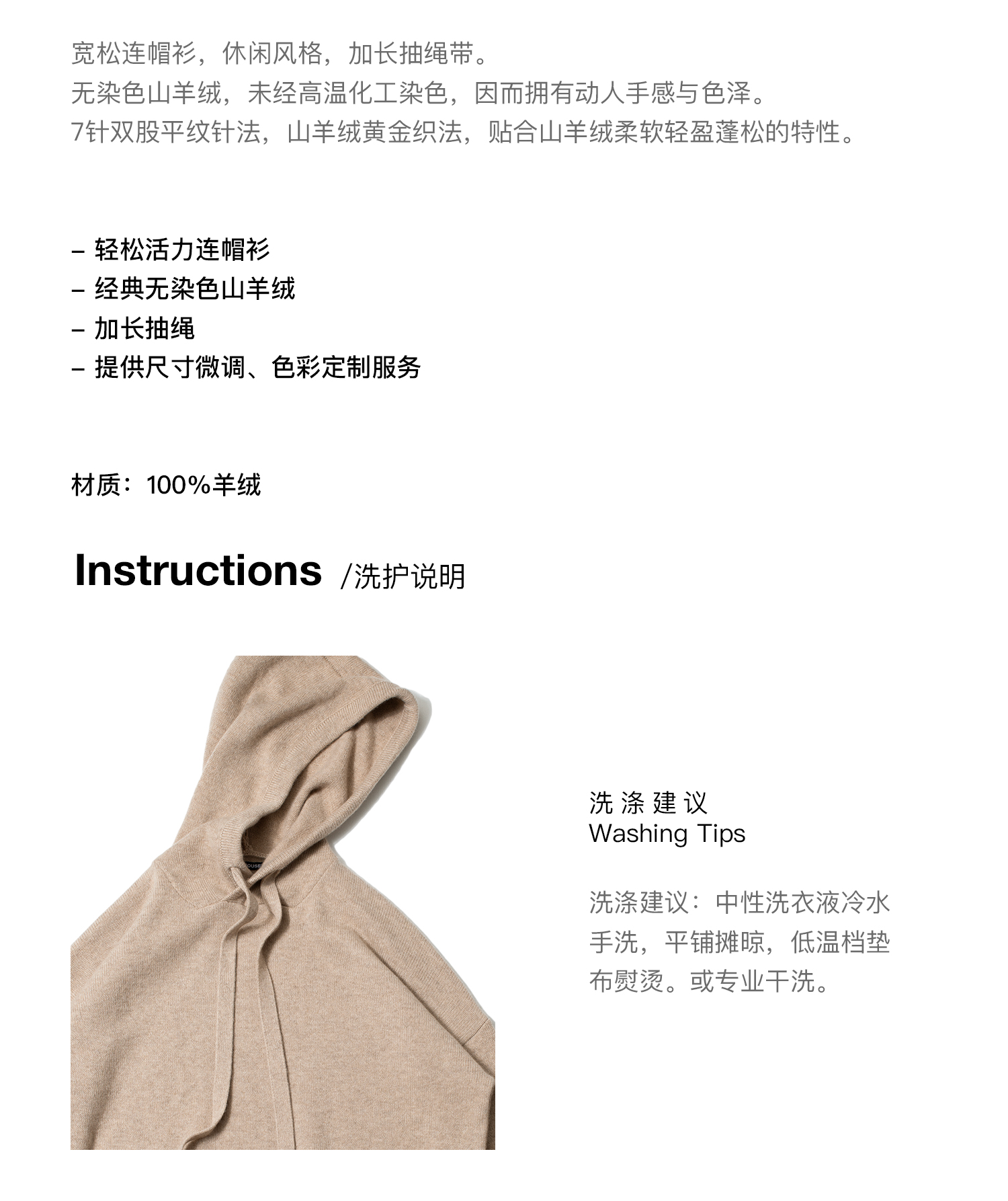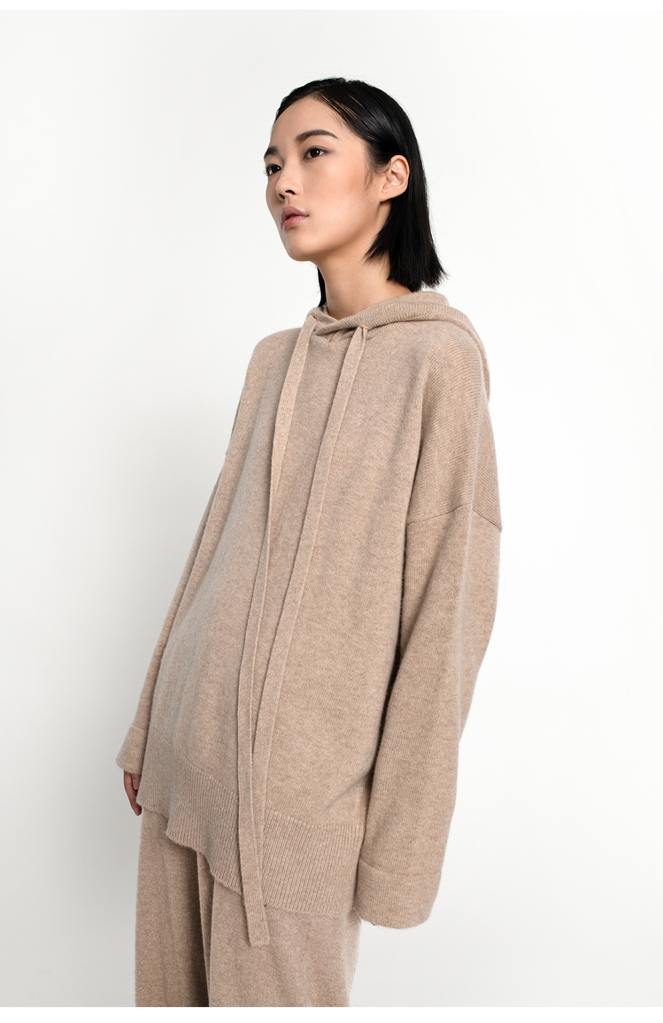 女士2021新款无染色纯山羊绒双股加厚连帽衫