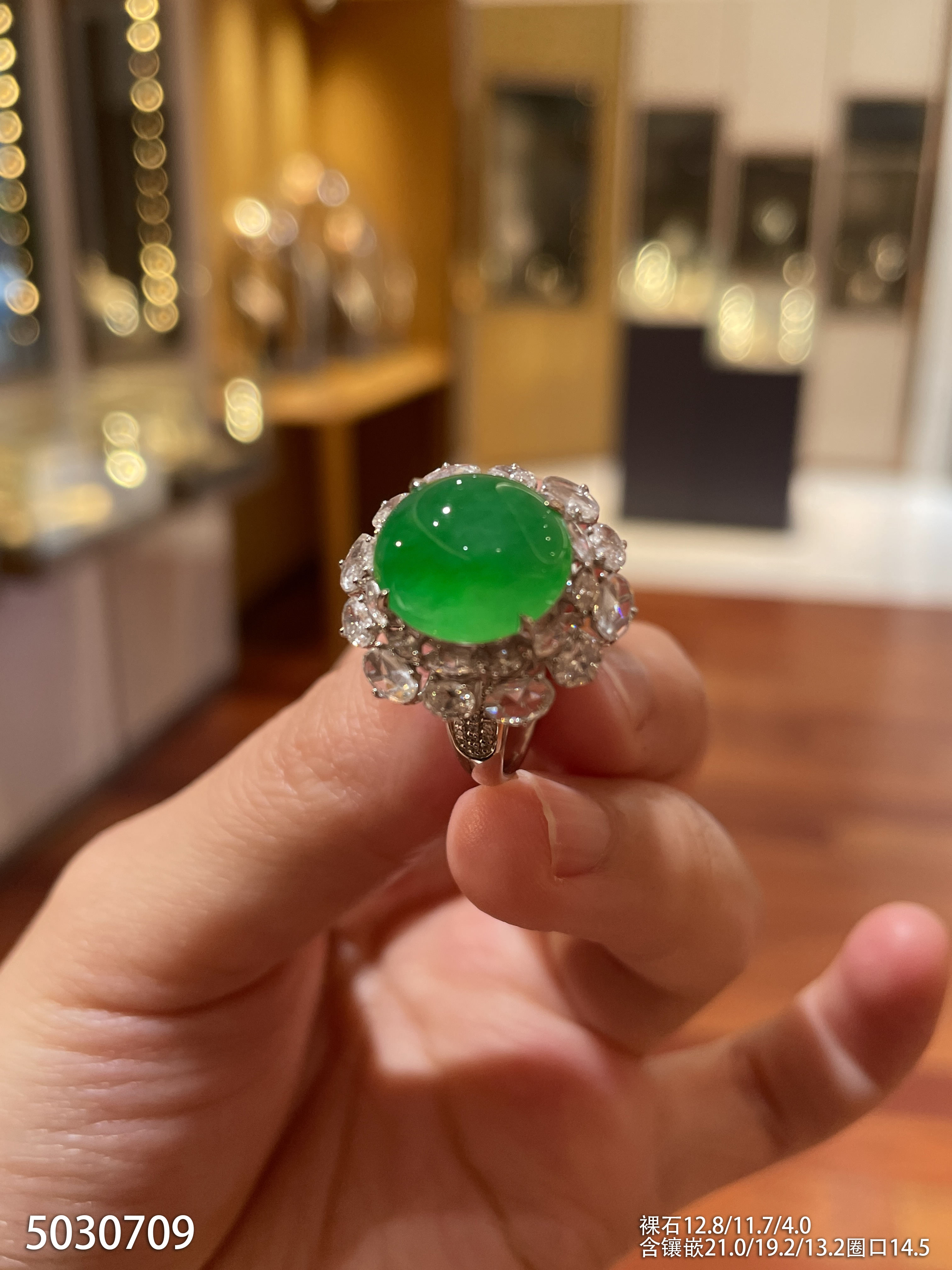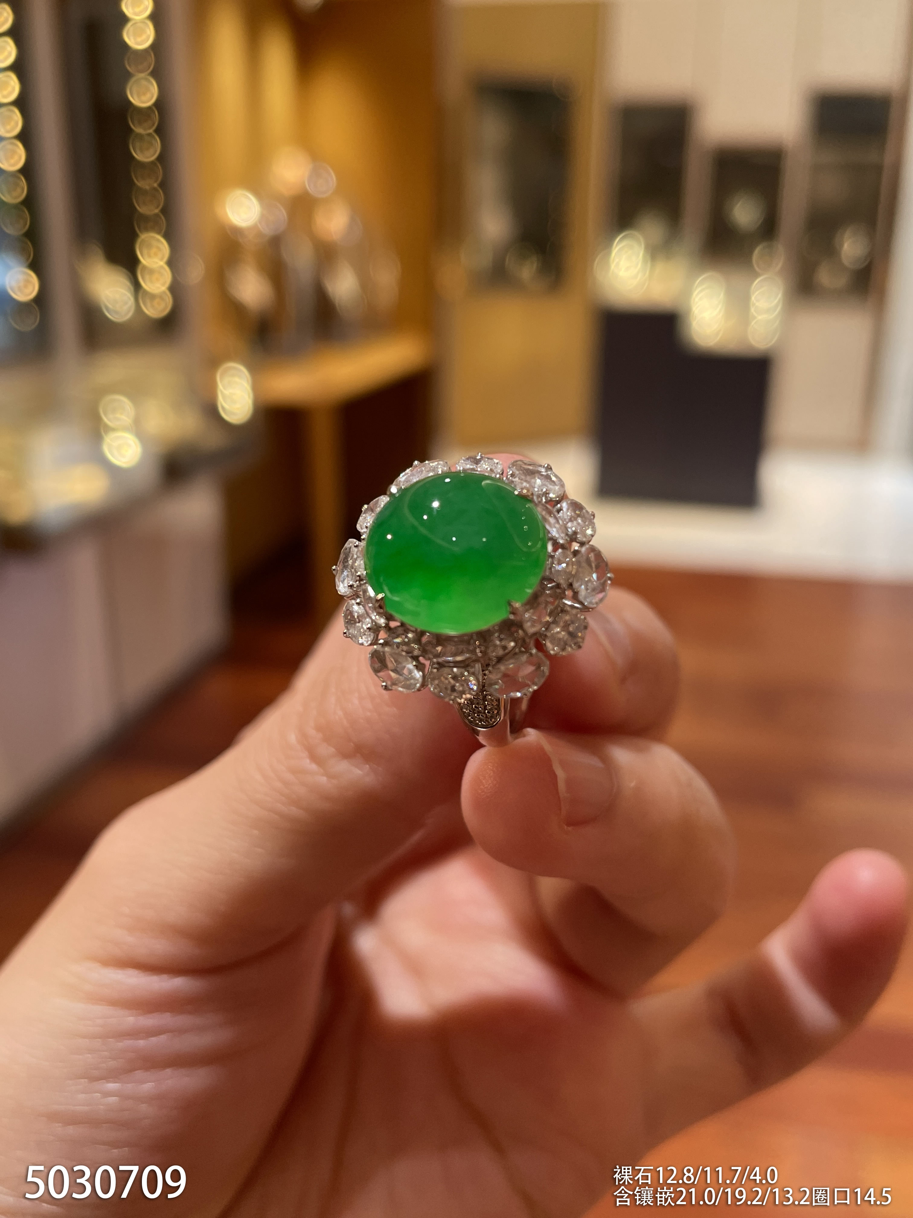 132-2123701,老坑高冰艳绿蛋面戒指,6599