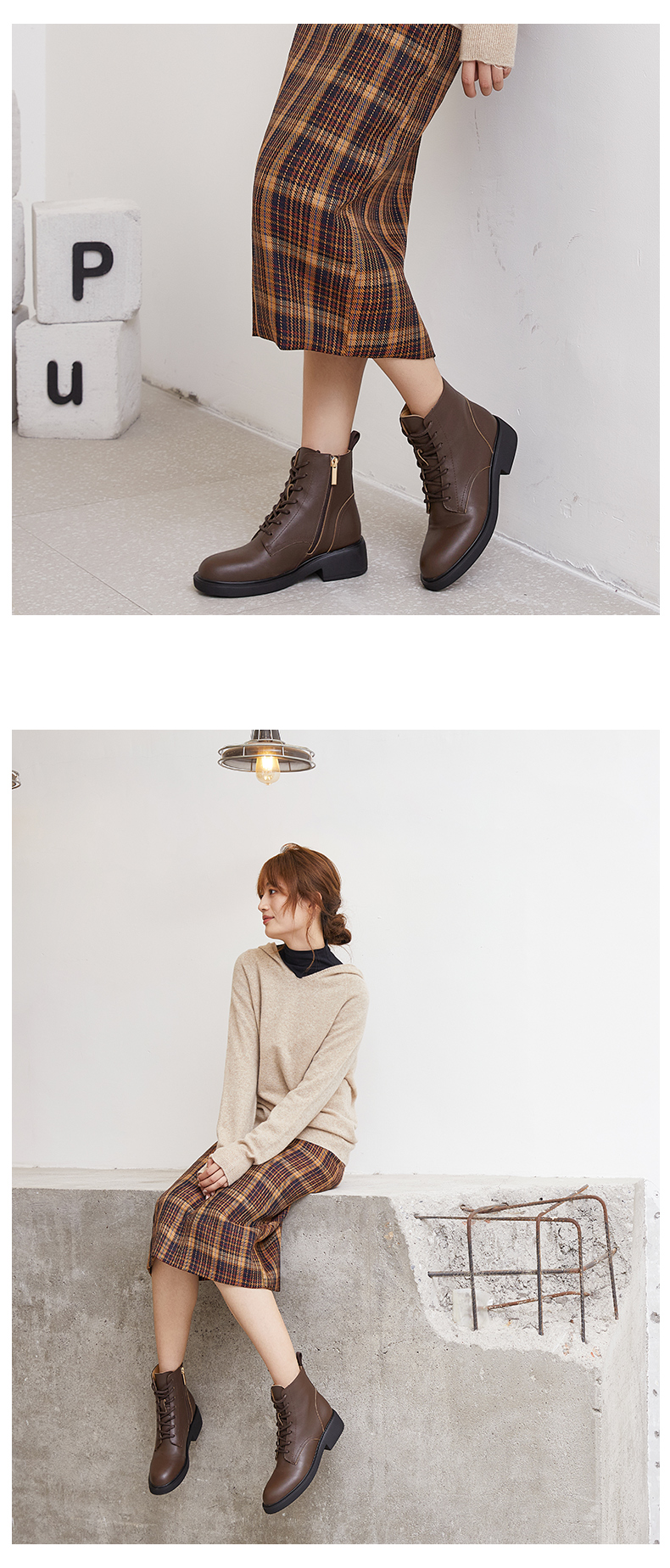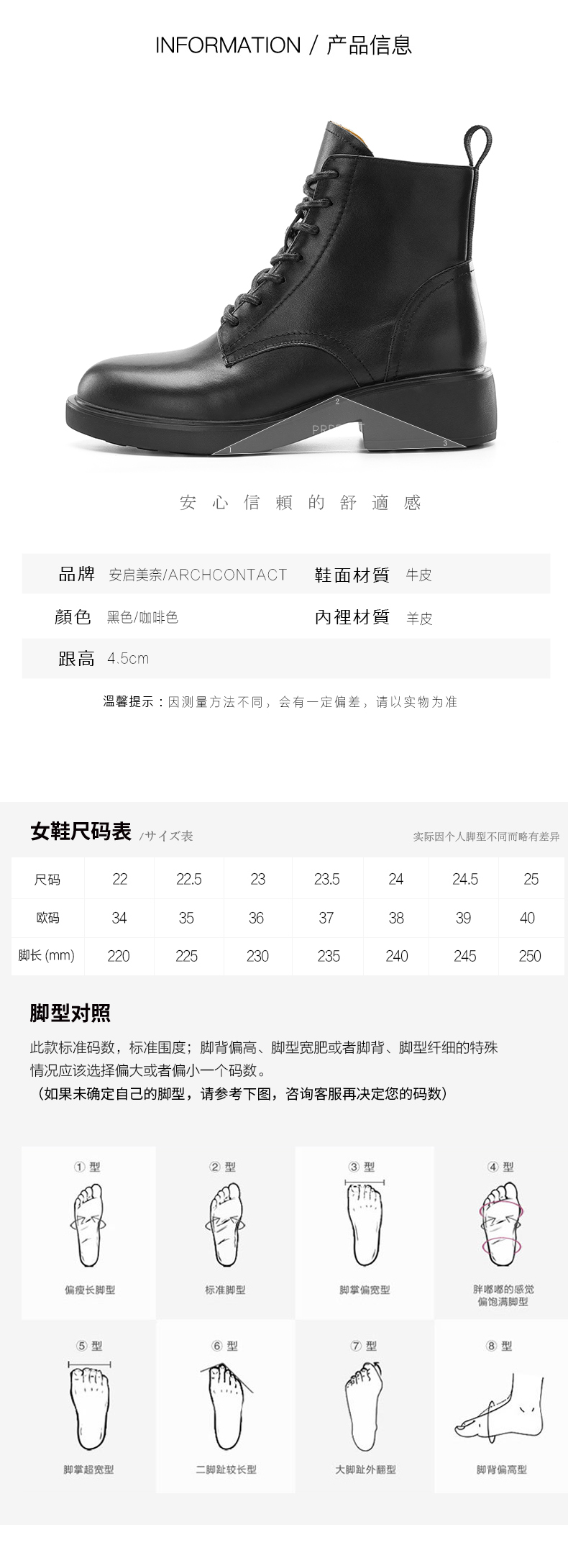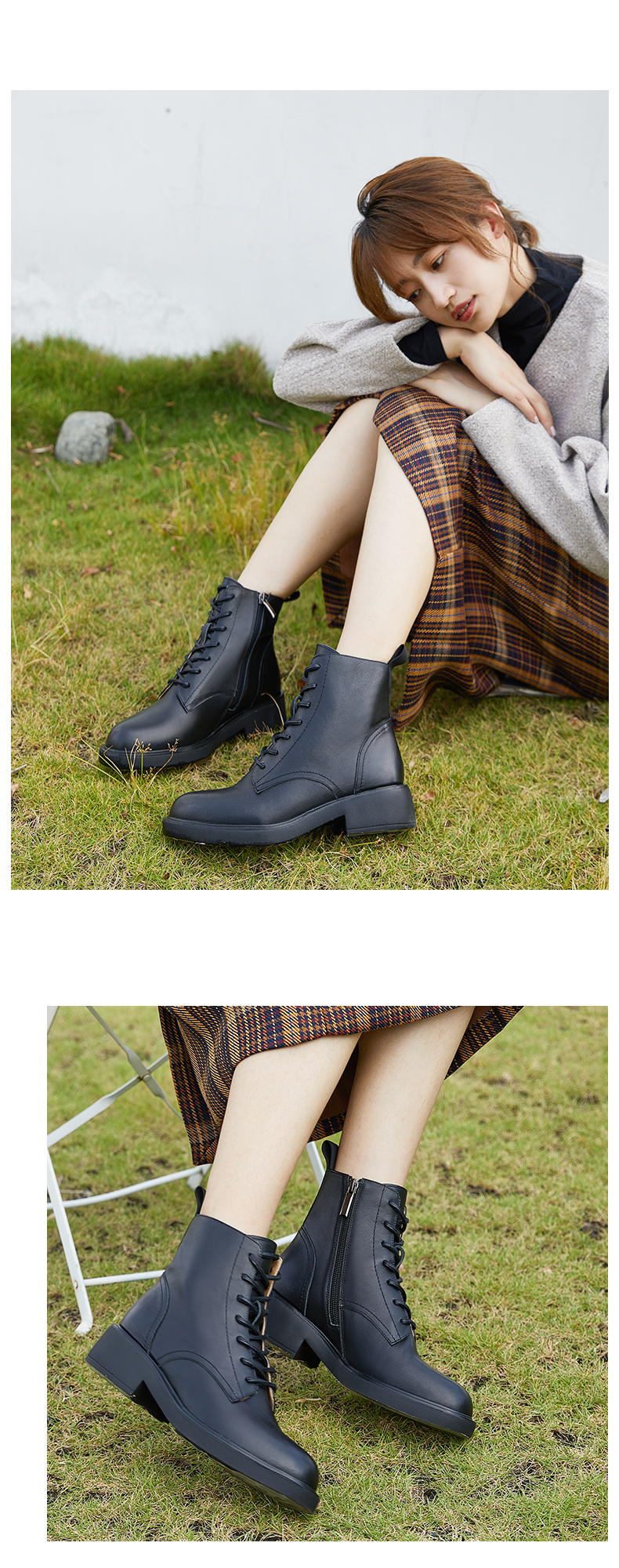 【活动价】ARCHCONTACT安启美奈百搭圆头系带马丁靴52785