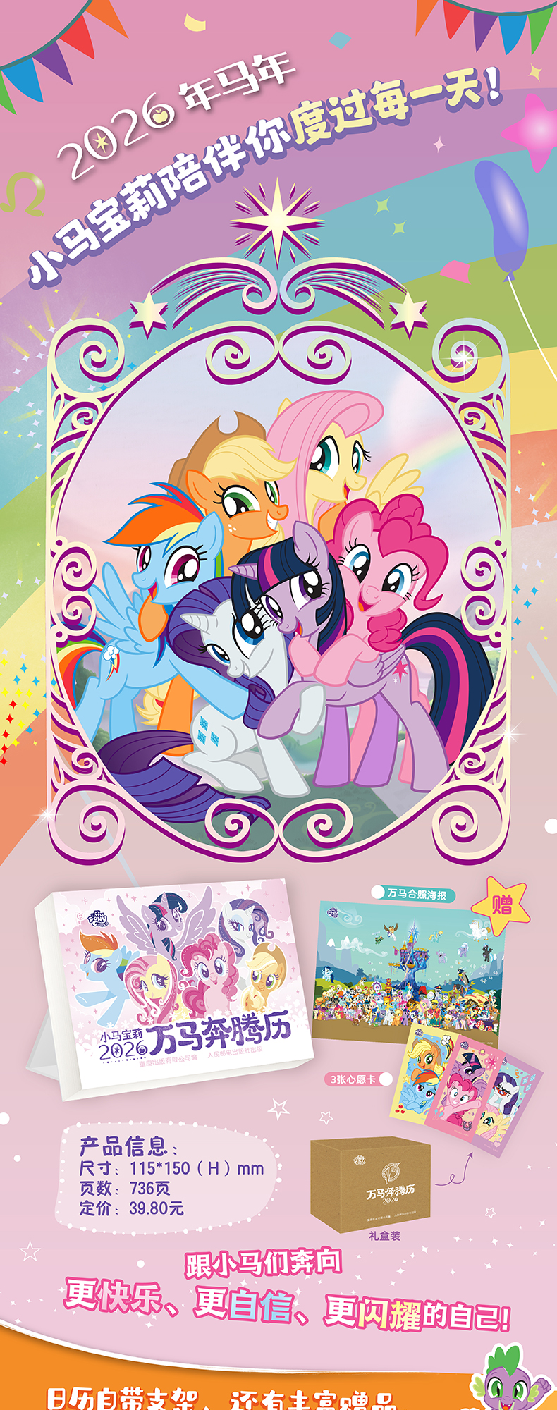 2026小马宝莉日历万马奔腾历马年新款 花开有时2026 新版日历台历年历儿童礼物可爱卡通创意