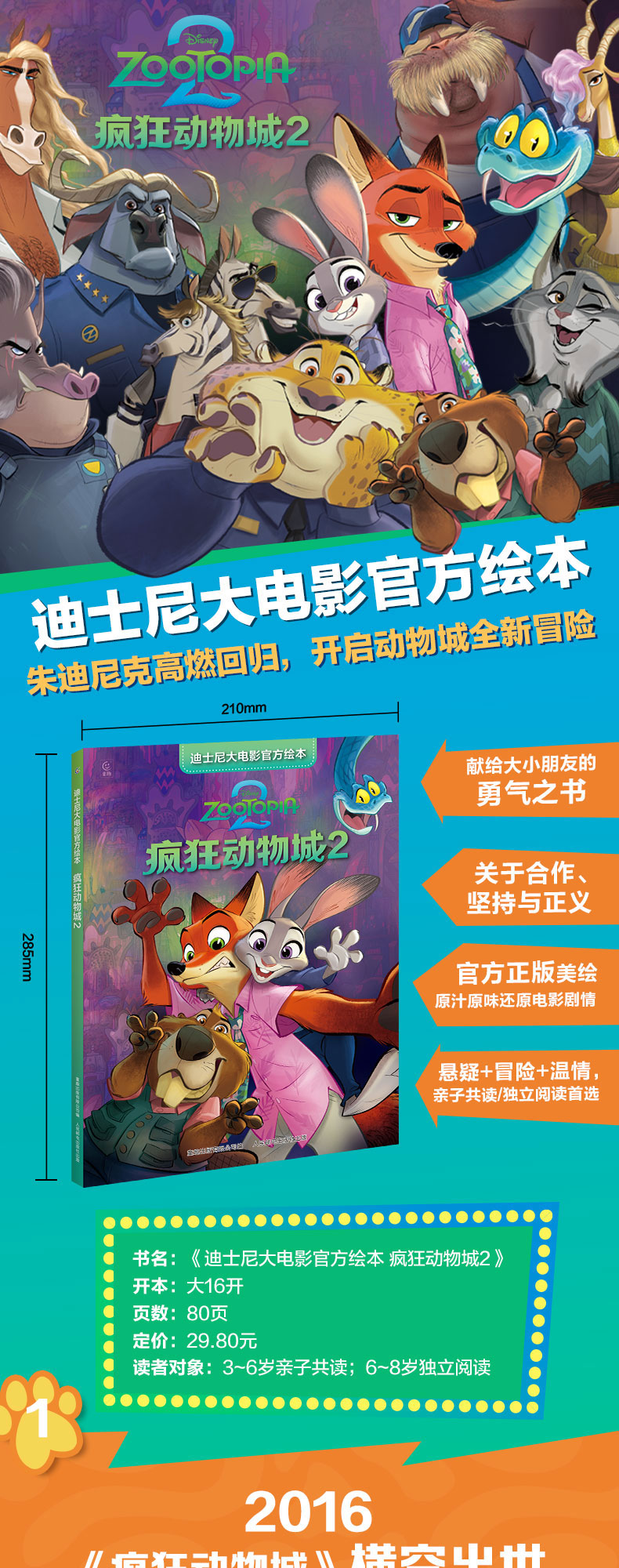 迪士尼大电影官方绘本·疯狂动物城2