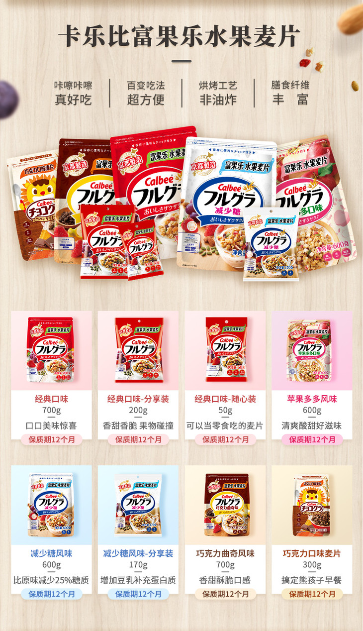 【北海道精选麦片】Calbee卡乐比 水果麦片700g 非油炸 黄金配比 日本进口 早餐 燕麦 包邮