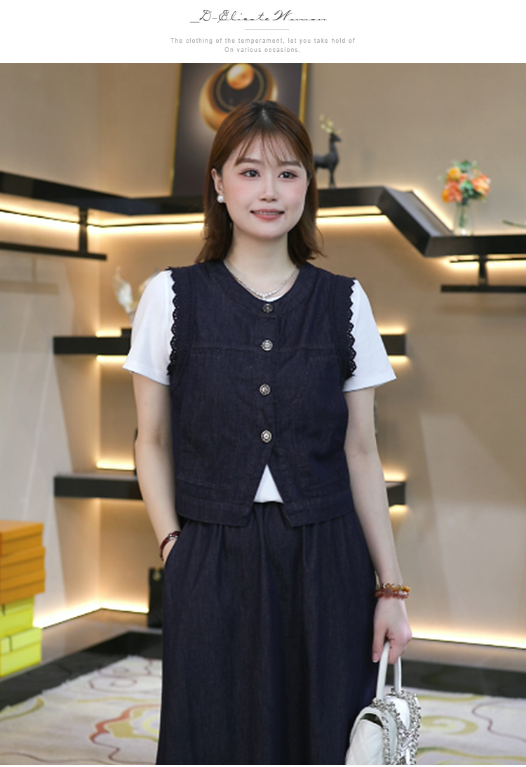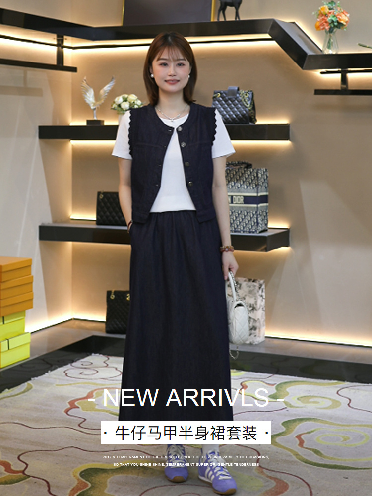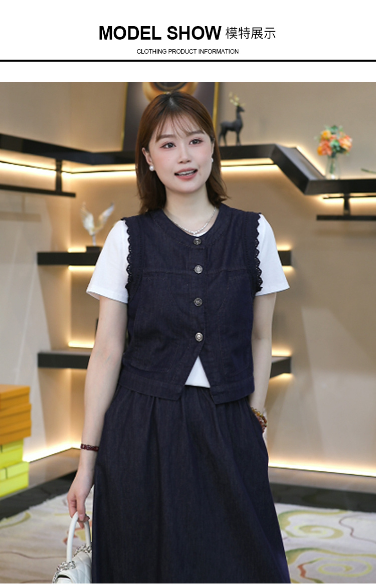 奢姿大码女装2026夏季牛仔马甲半身裙两件套胖妹妹减龄遮肉套装9962972272