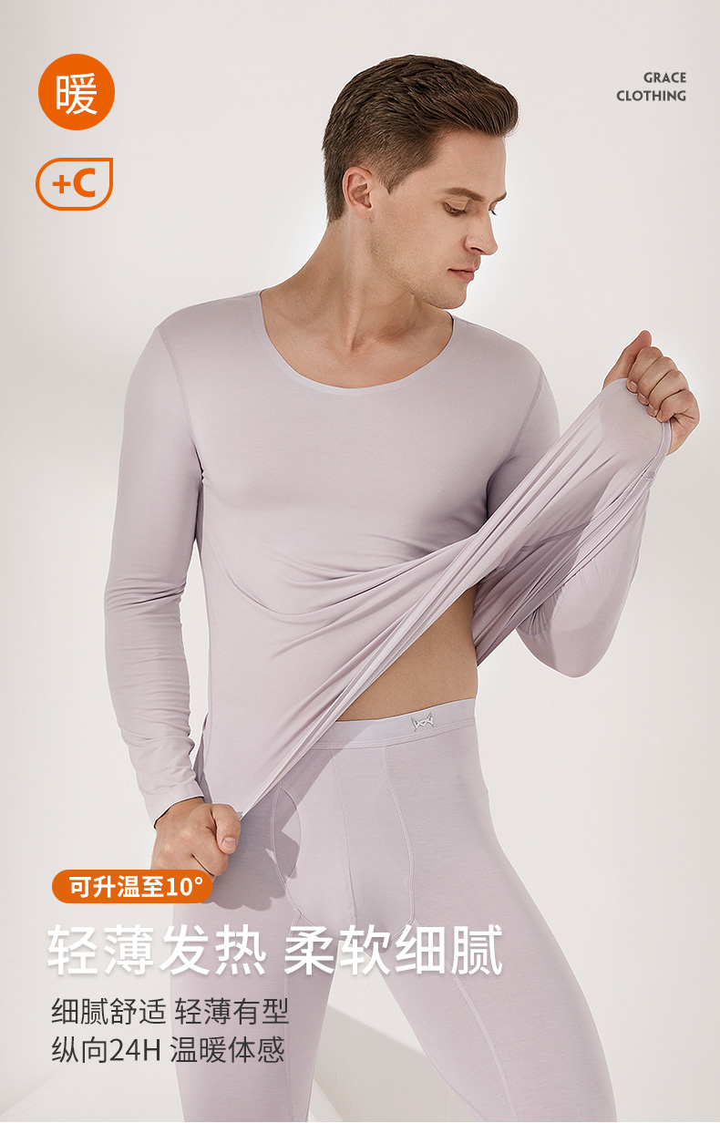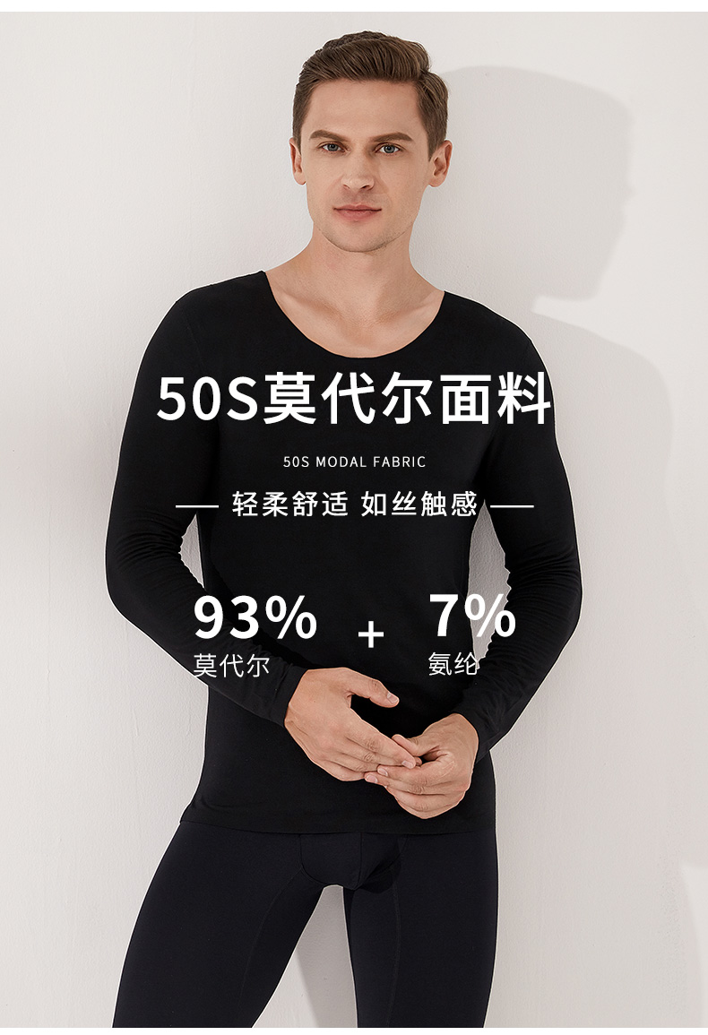 特价 洁丽雅男士保暖套装莫代尔保暖内衣轻薄舒适圆领内衣男秋衣秋裤