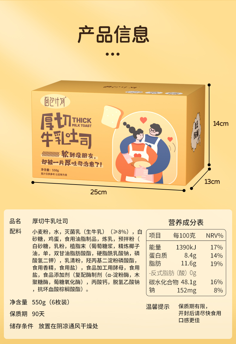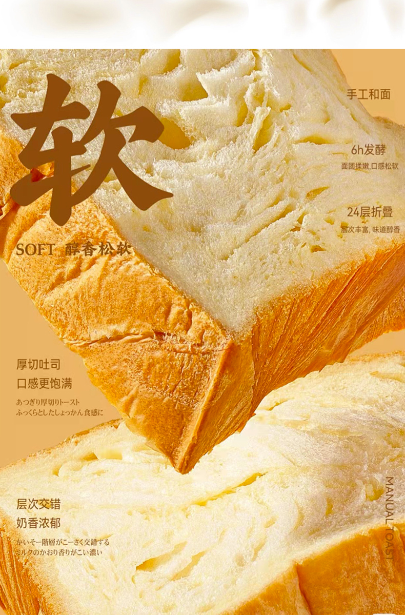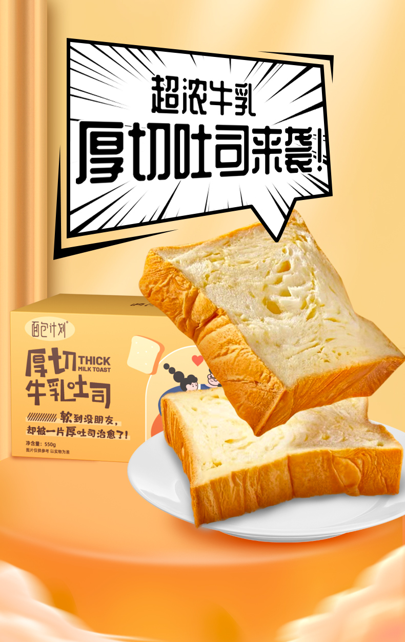 面包计划厚切吐司550g/箱*2箱 手撕千层牛乳吐司面包 全麦切片 层次感十足