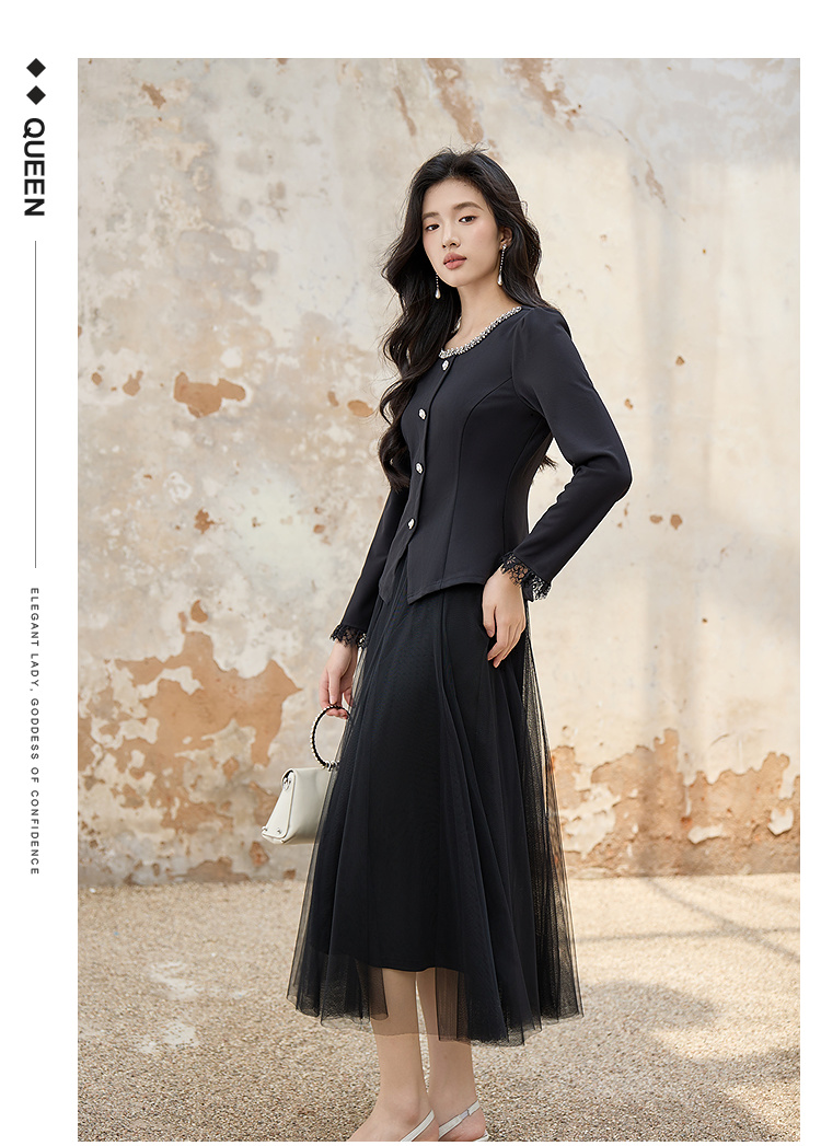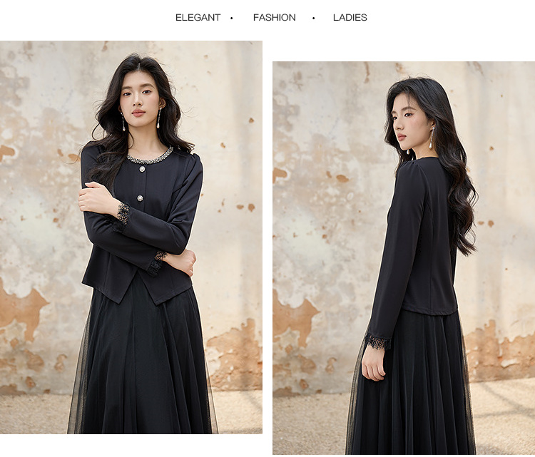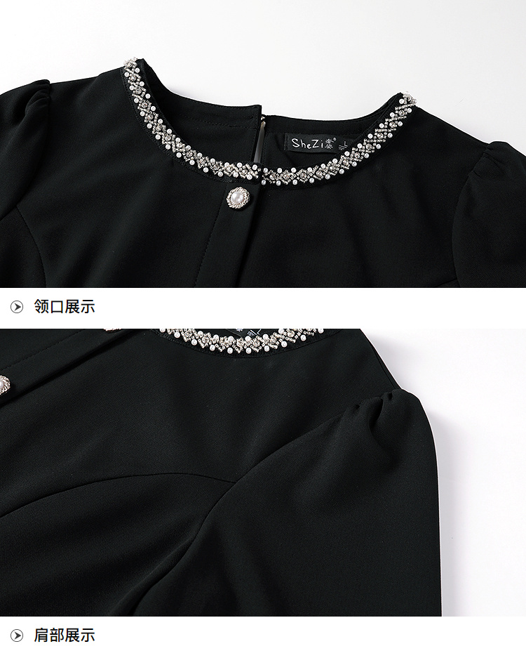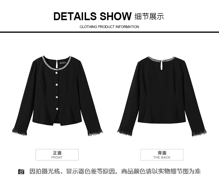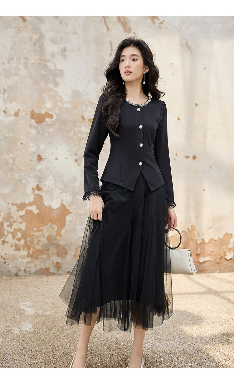 奢姿大码女装2025秋季胖妹妹时尚水钻装饰气质蕾丝拼接圆领上衣9953253603A