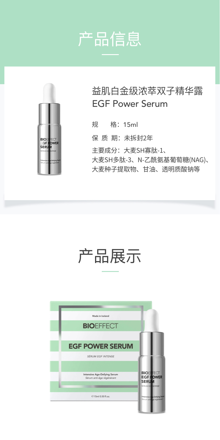 保税直发 BIOEFFECT 蓓欧菲 益肌白金级浓萃双子精华露 15mL+冰封无痕水凝胶面膜 6片/盒