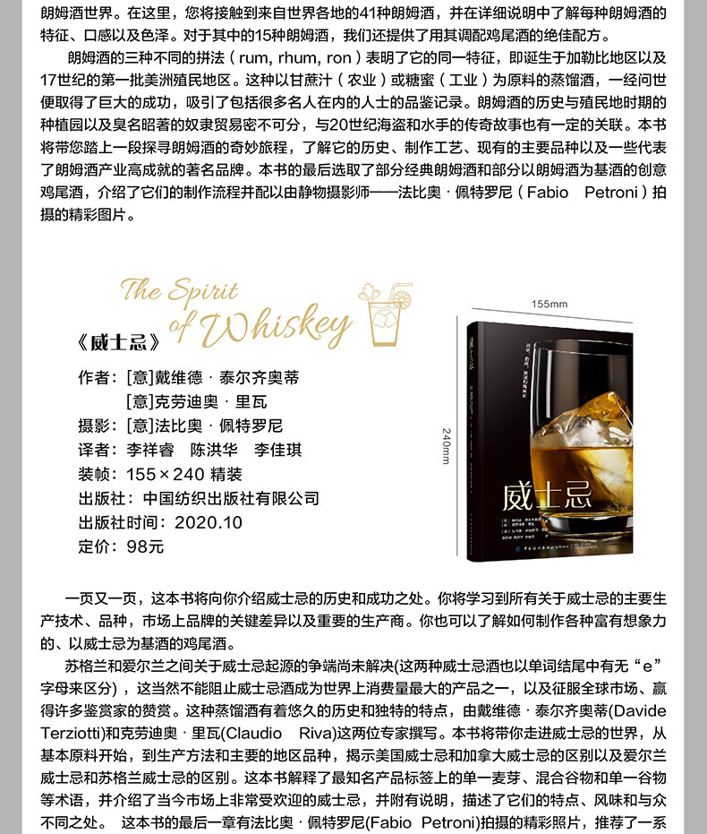 2020新书 威士忌 经典鸡尾酒酿造酿制工艺技术教程书籍 威士忌生产方法蒸馏器金酒生产加工制备工艺流程大全书配方设计大全调制作