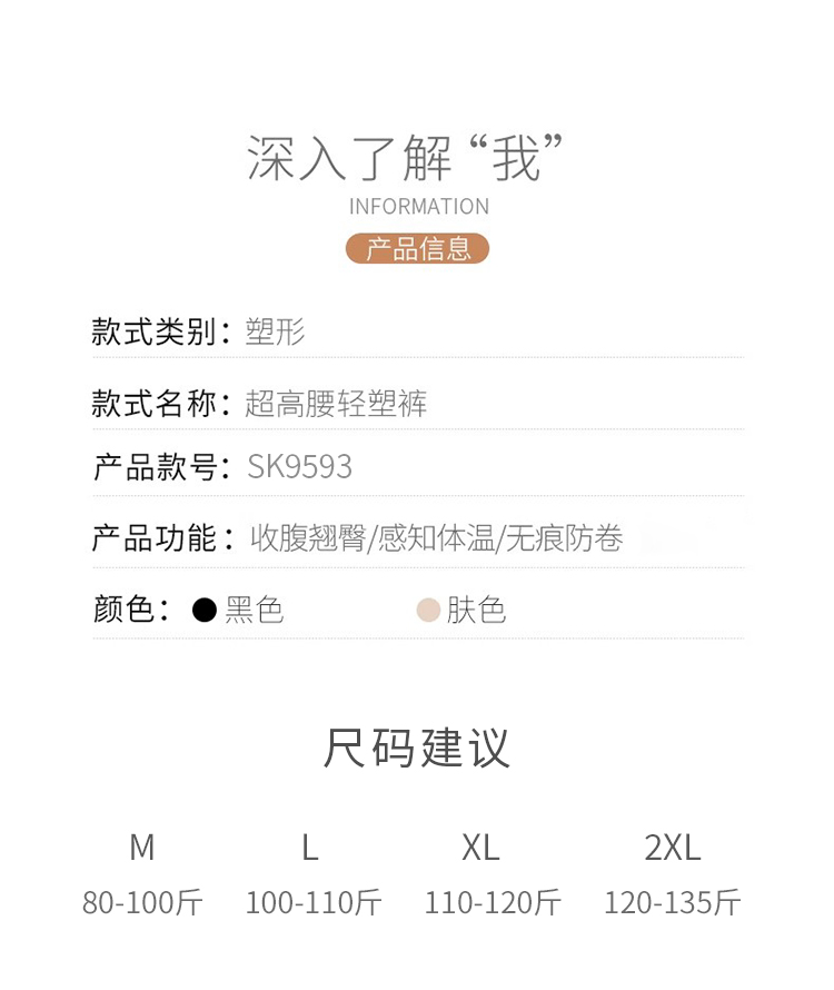 【2条装】皇家丽美 收腹翘臀凉感亲肤塑身束裤超高腰轻塑裤女SK9593