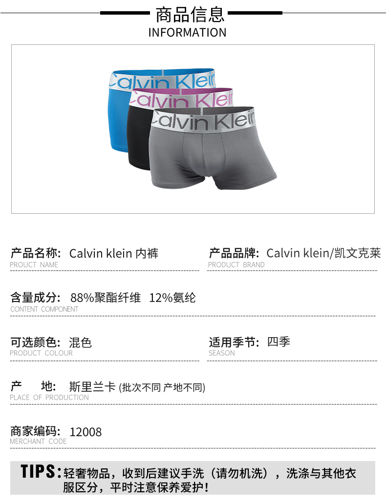 【超惠秒】Clavin Klein CK男士新晋款三件装弹力舒适内裤 12008