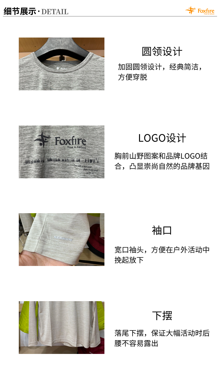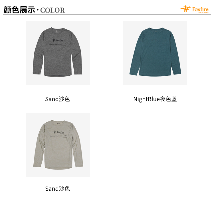 【1.6折!199秒!】Foxfire 男女户春秋外圆领休闲户外运动徒步舒适长袖T恤薄款5215757/8215867