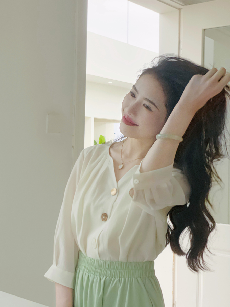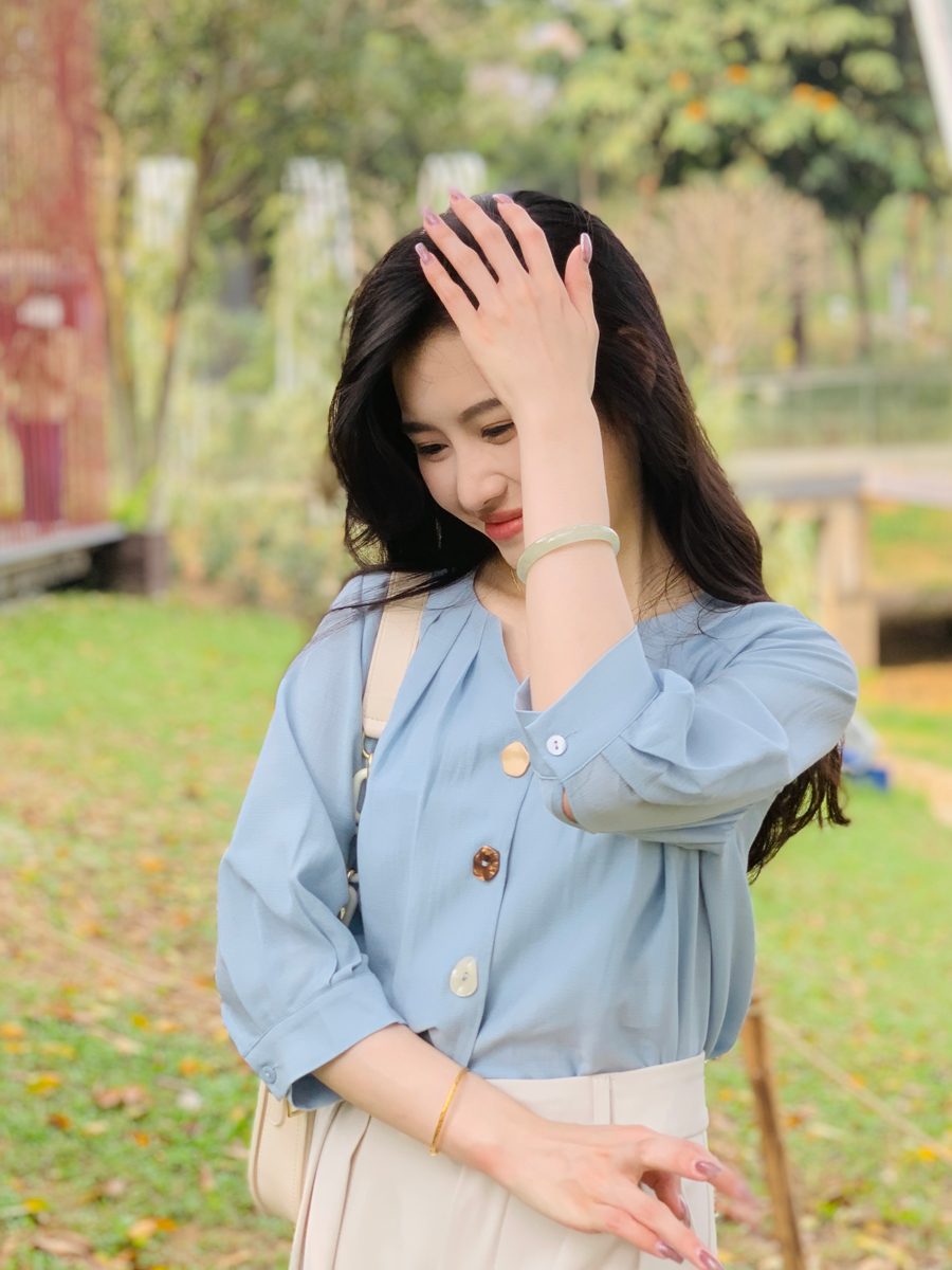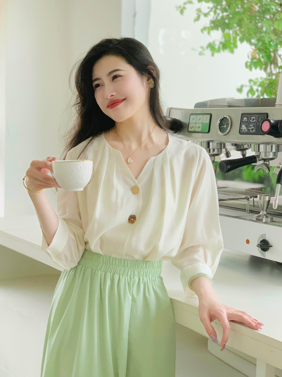 【百图lulu定制】【琥珀衬衫】法式气质 知性通勤 七分袖衬醋酸纤维 混纺 衫衬衣