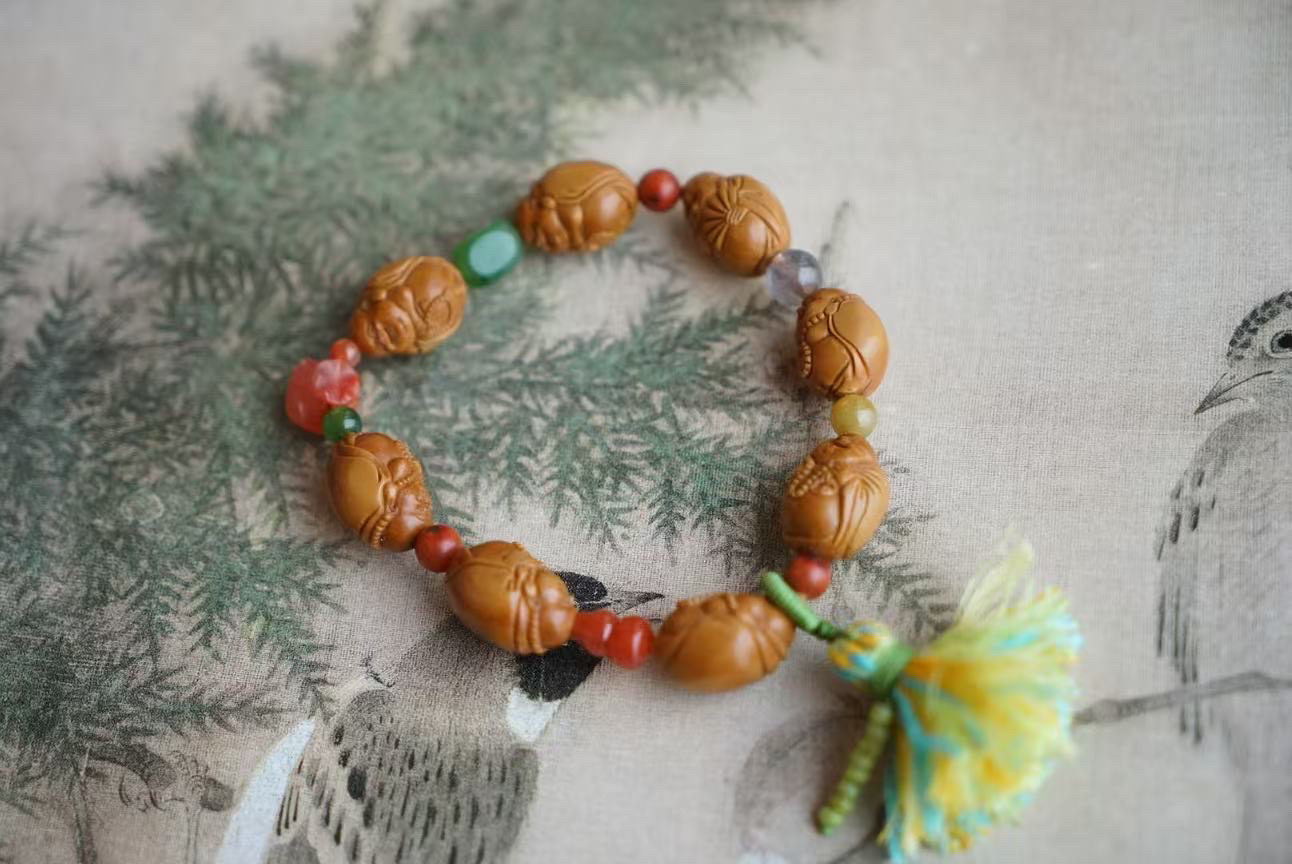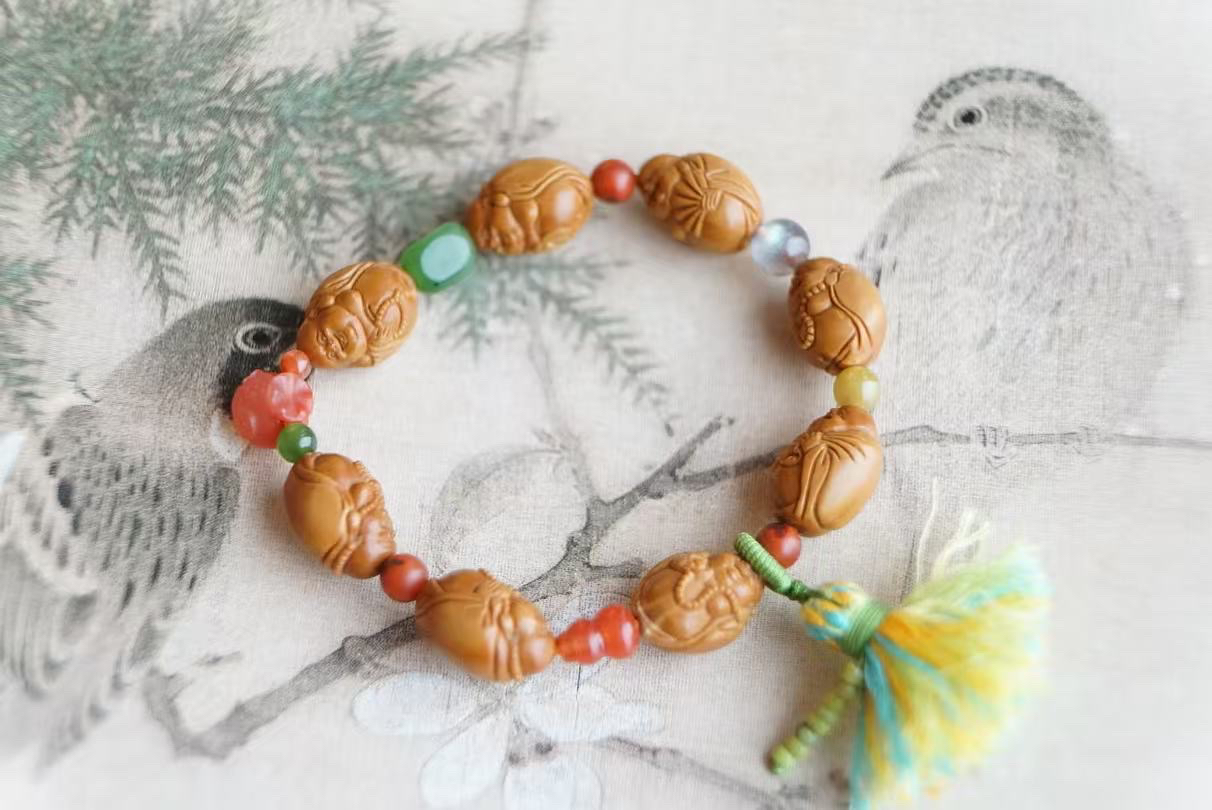 也算是我们蜜桃很甜十年橄榄核品控出品了~橄榄核密度够!扎实!工艺每一颗雕刻的都细致且…好可爱呀喜庆!