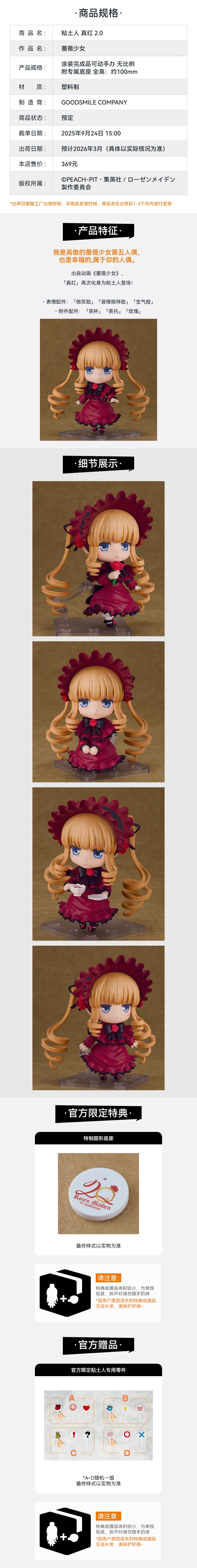 【GSC补款】粘土人 真红 2.0 蔷薇少女 附官方限定特典