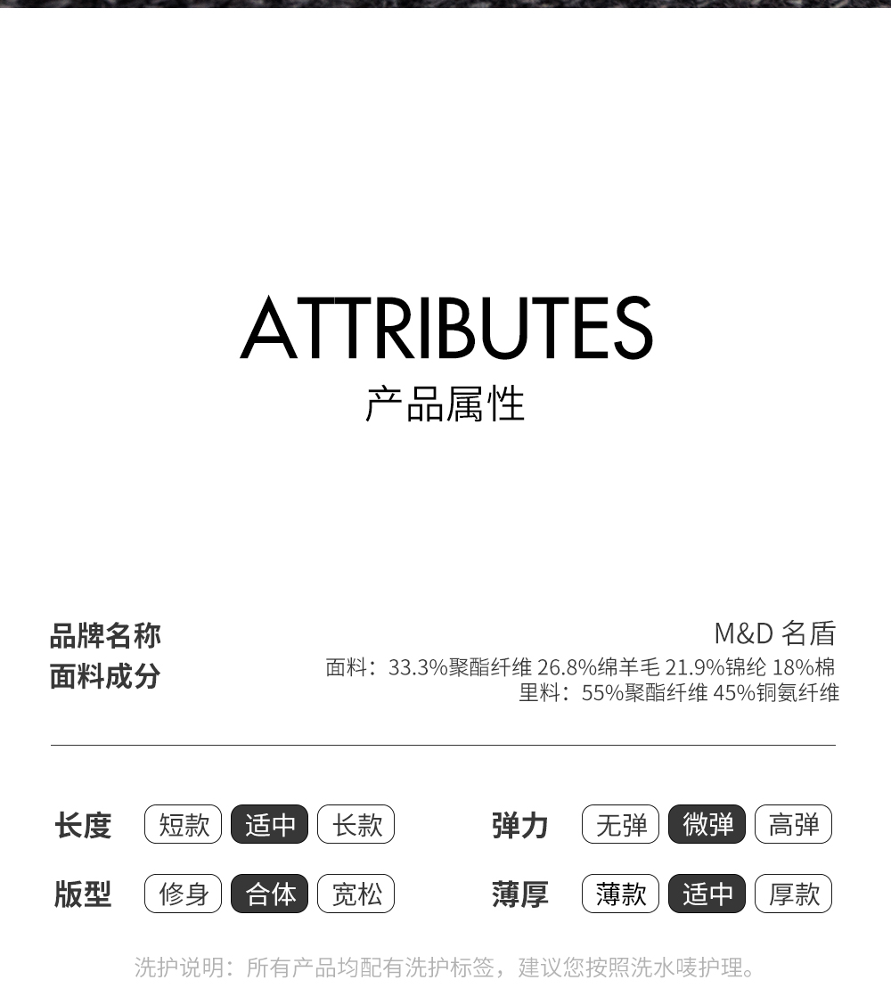 M&D名盾商务男士秋冬新款休闲工装中腰正装修身职业锥型长裤