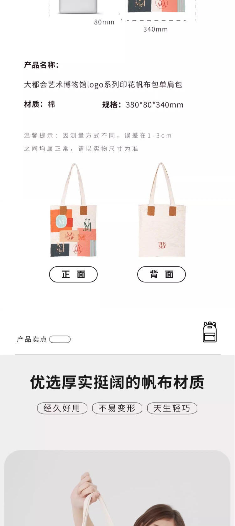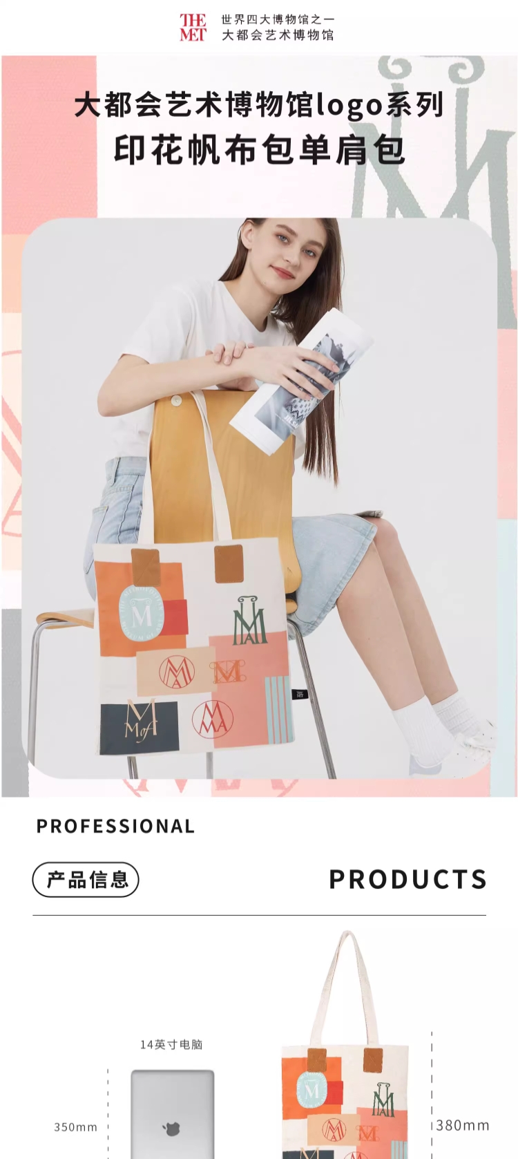 大都会艺术博物馆logo系列 小清新印花帆布包单肩包