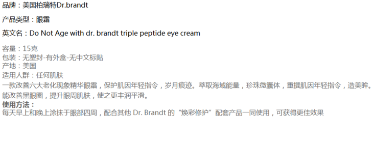 【香港直邮】Dr.brandt 柏瑞特 R3P焕彩眼霜DNA胜肽眼霜15g