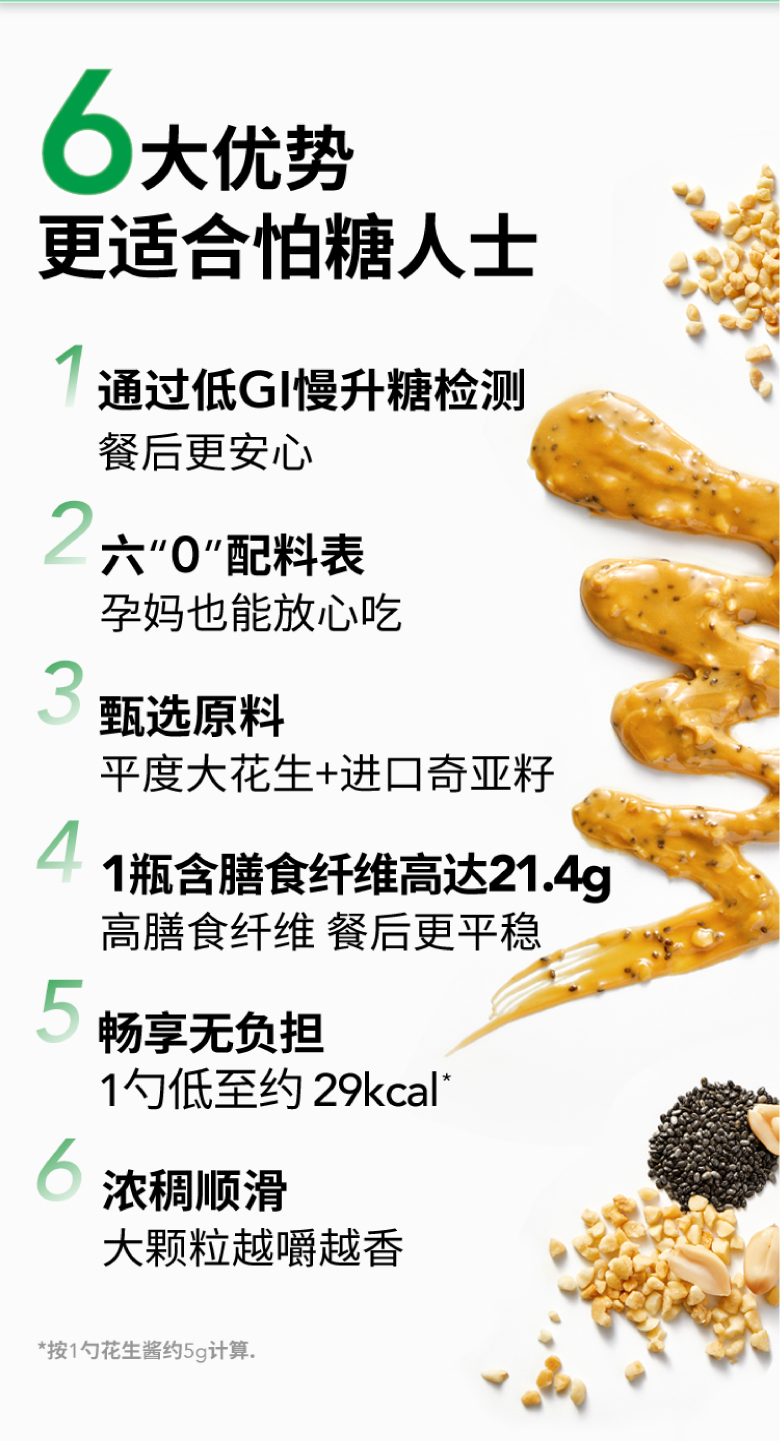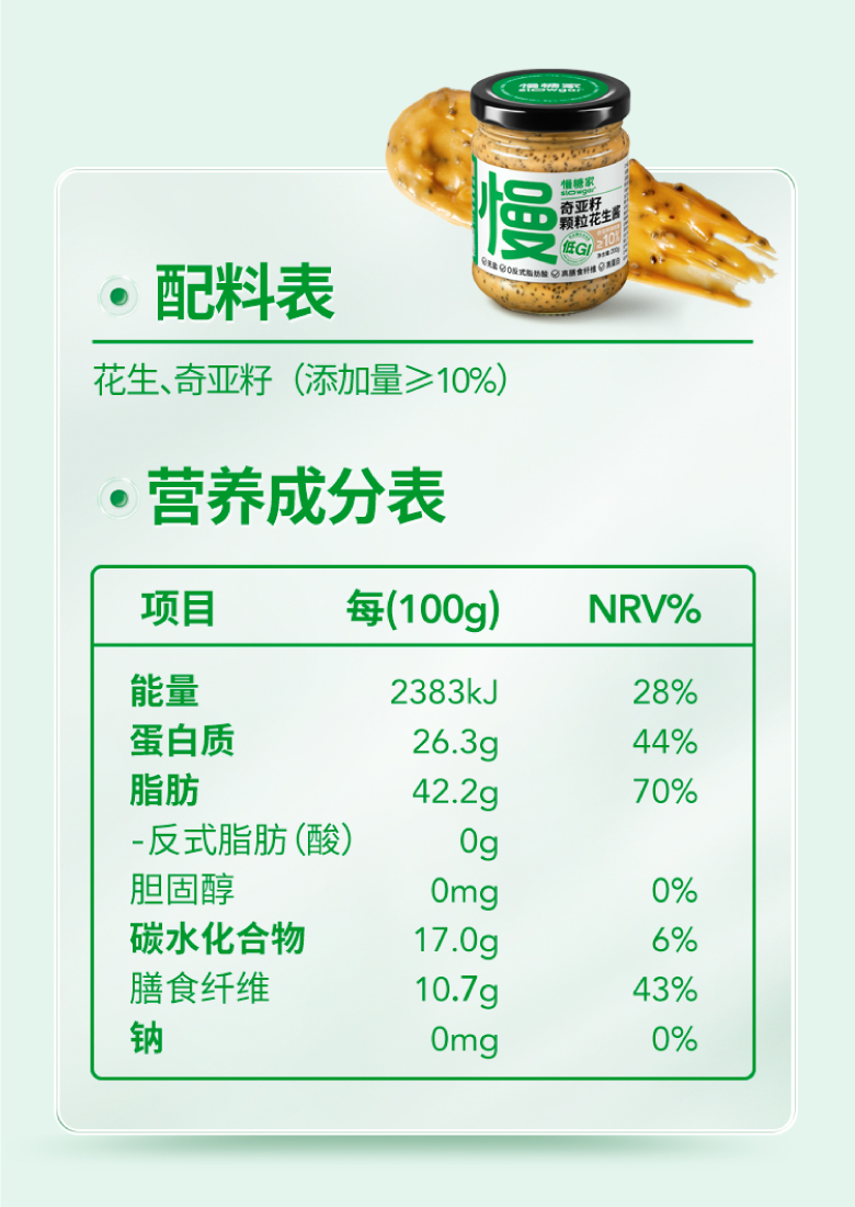 奇亚籽颗粒花生酱!低GI!进口奇亚籽>10%!0反式脂肪酸!