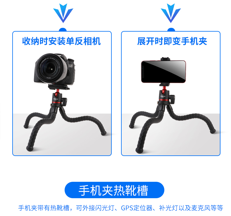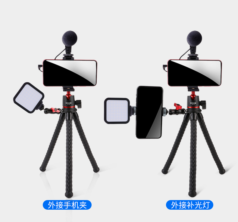 狼族优选丨多功能冷靴手机夹横竖旋转 直播三脚架八爪鱼vlog科漫