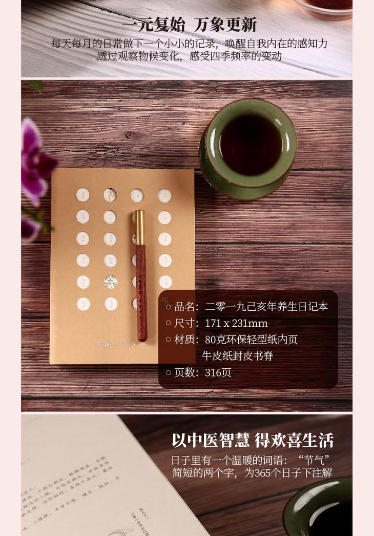 正安节气饮食医嘱养生小知识 环保材质 2019己亥年养生日记本