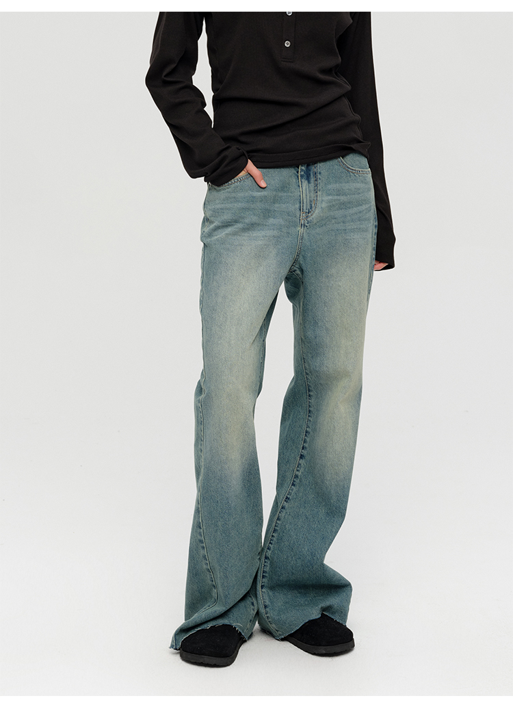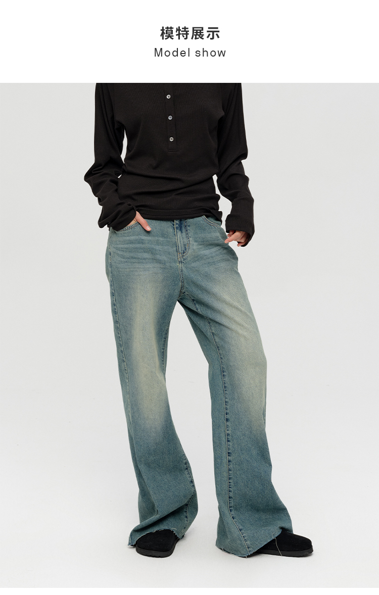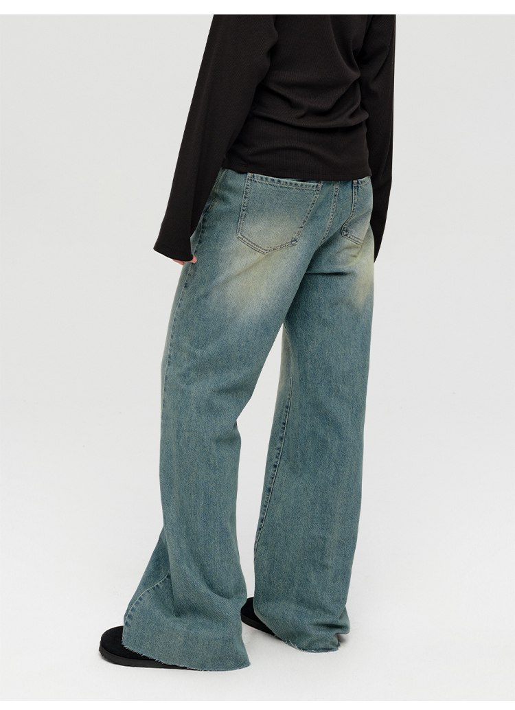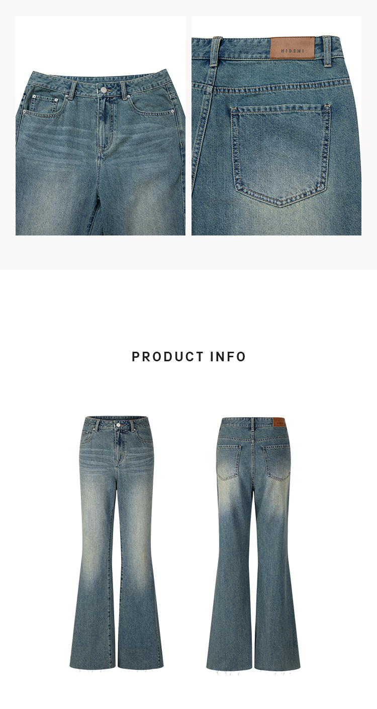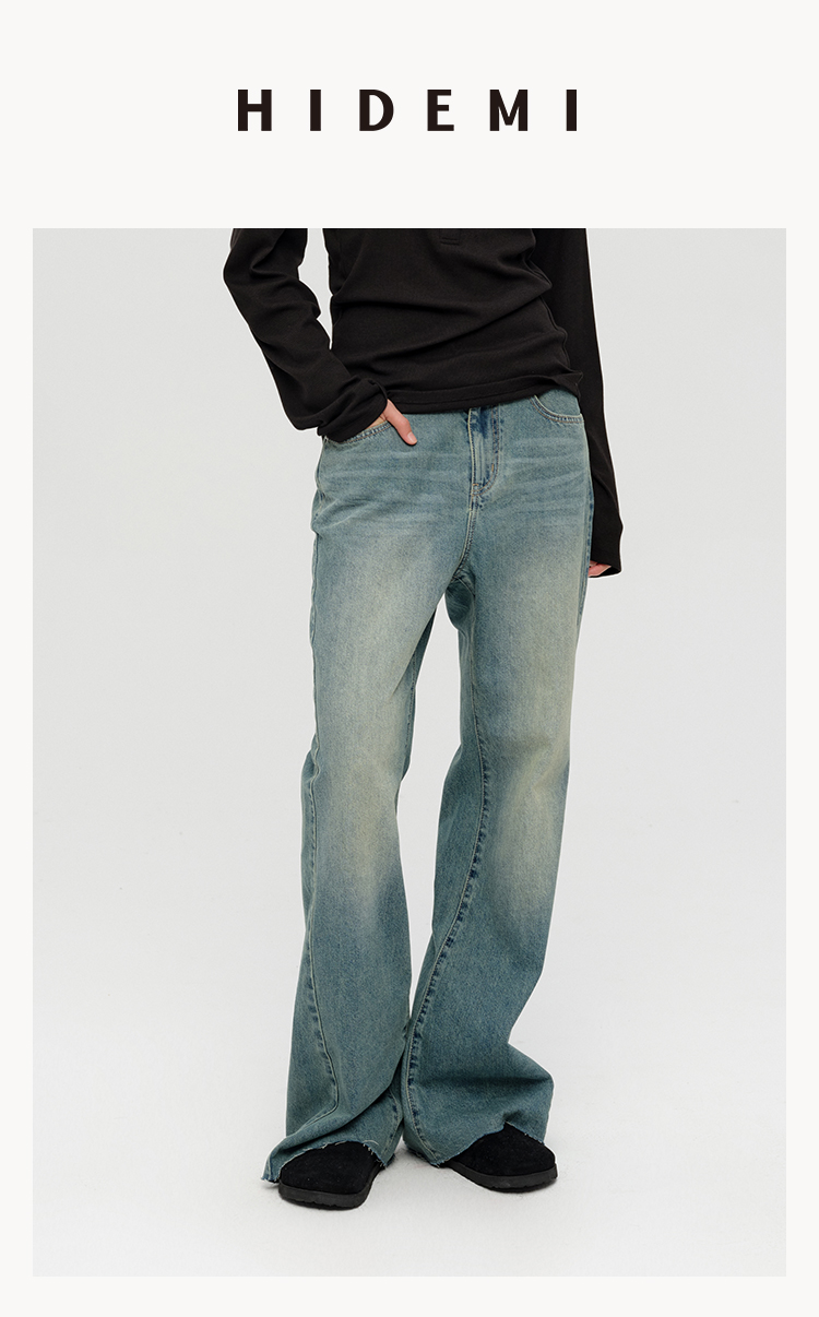 HIDEMI 多重水洗做旧感微喇叭宽松中低腰长裤牛仔裤