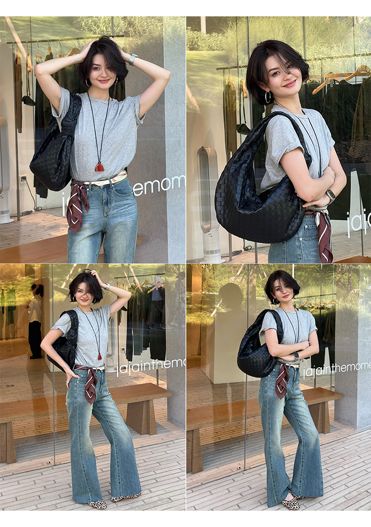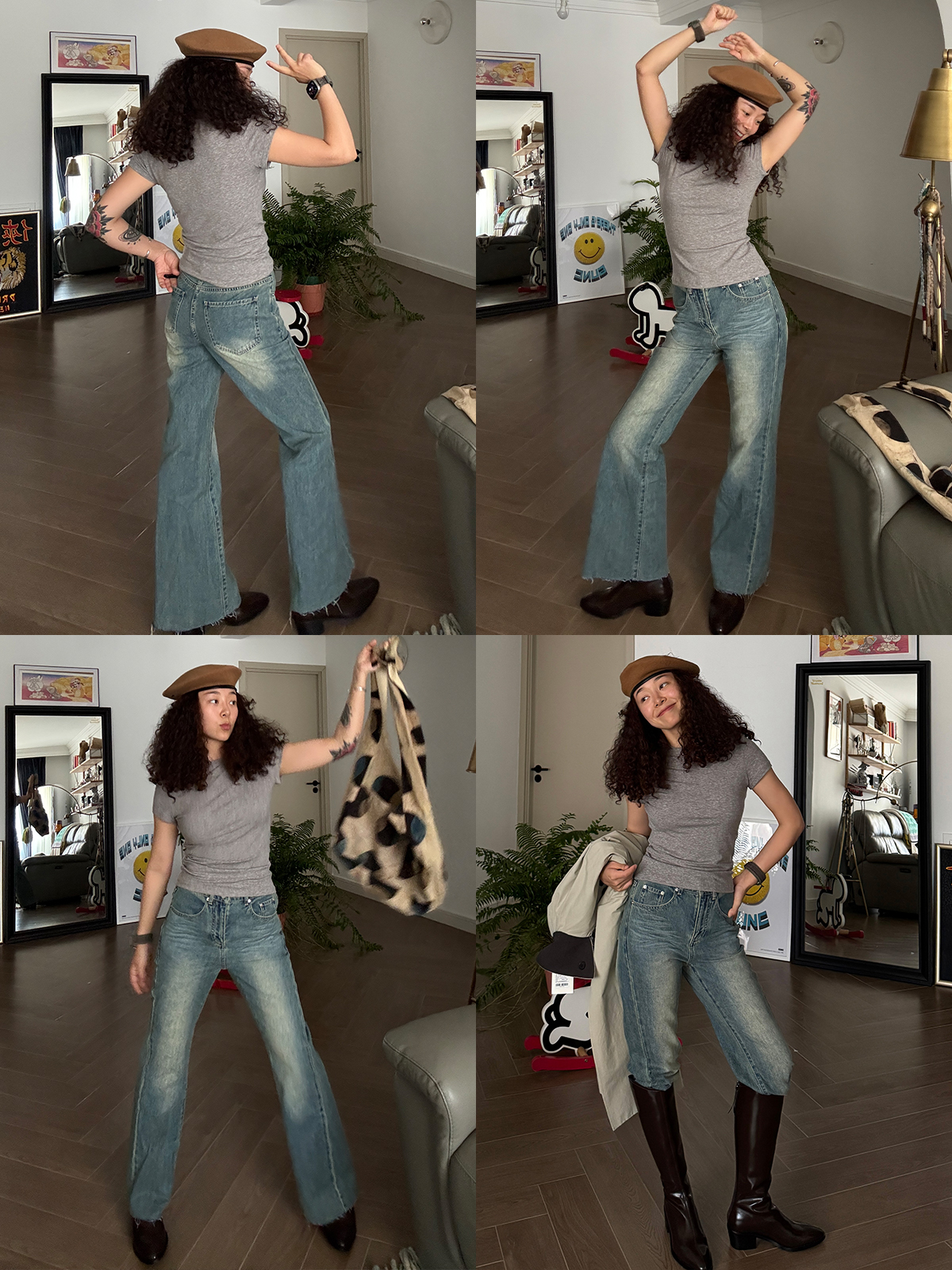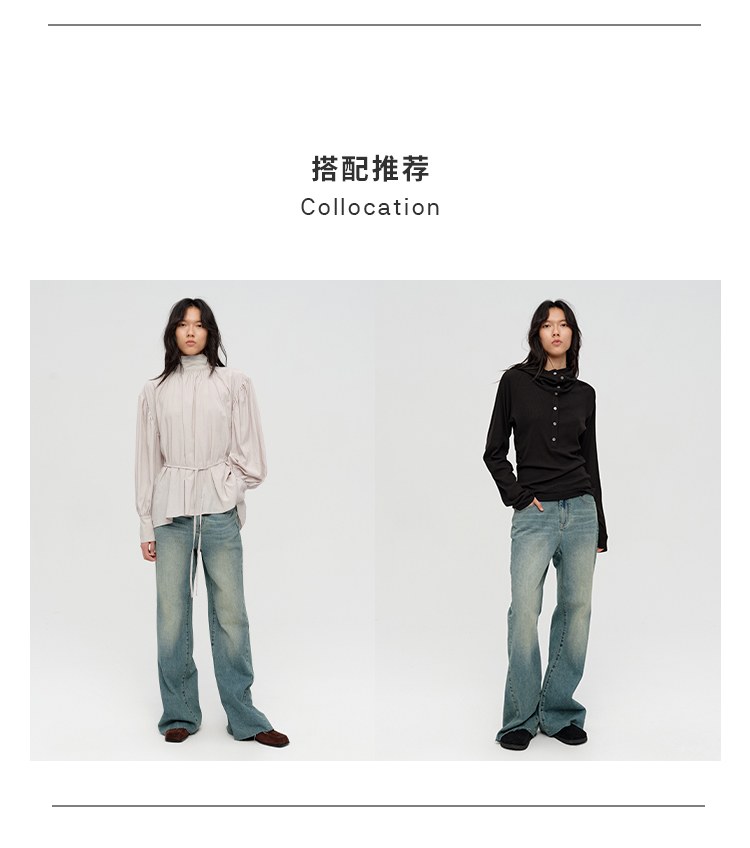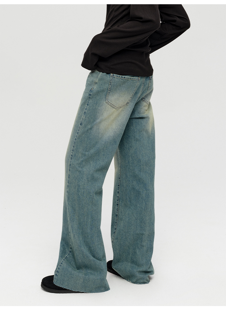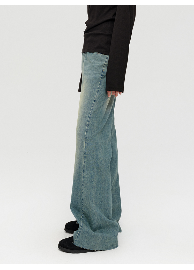 HIDEMI 多重水洗做旧感微喇叭宽松中低腰长裤牛仔裤